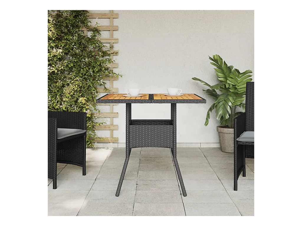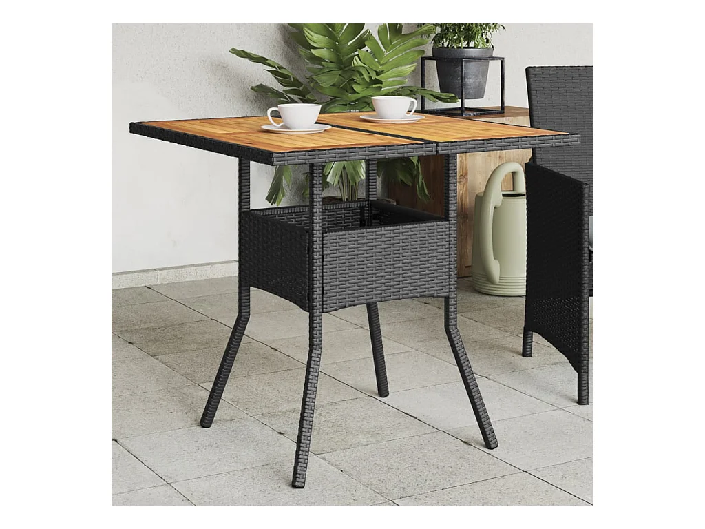 Table d'extérieur Noir Résine tressée et bois d'acacia solide