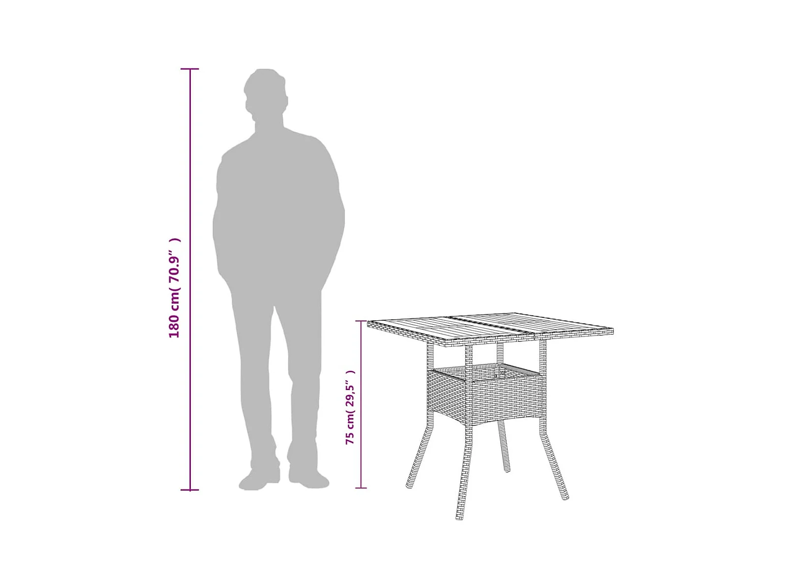 Table de jardin et dessus en bois d'acacia noir résine tressée