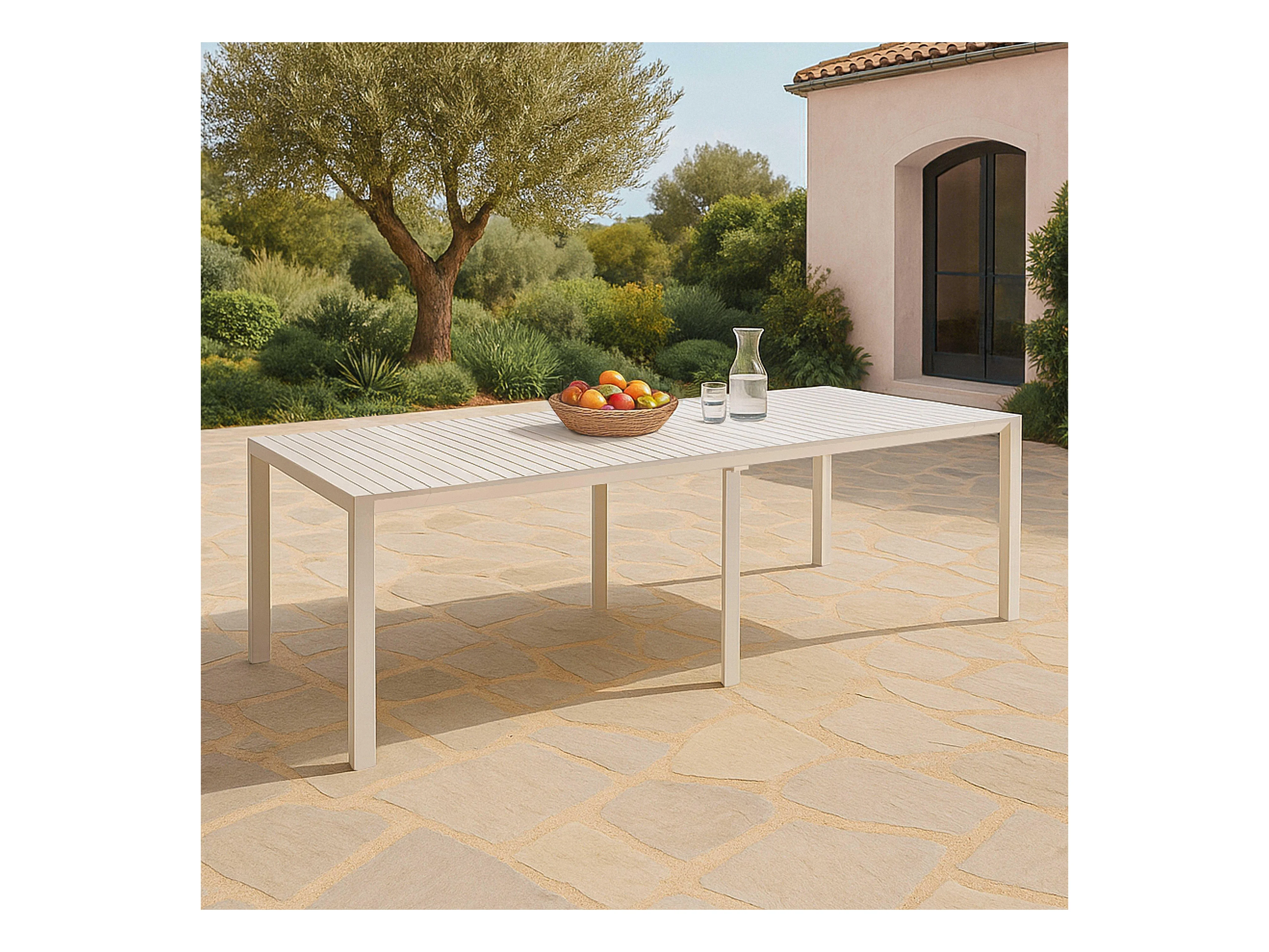 Table de jardin extensible 52/260 cm en aluminium blanc