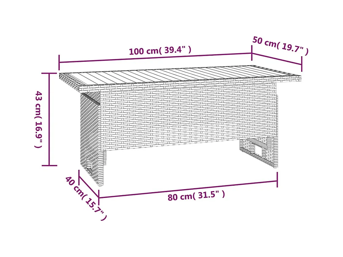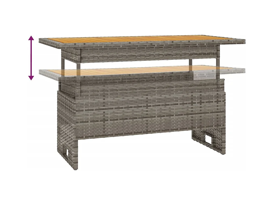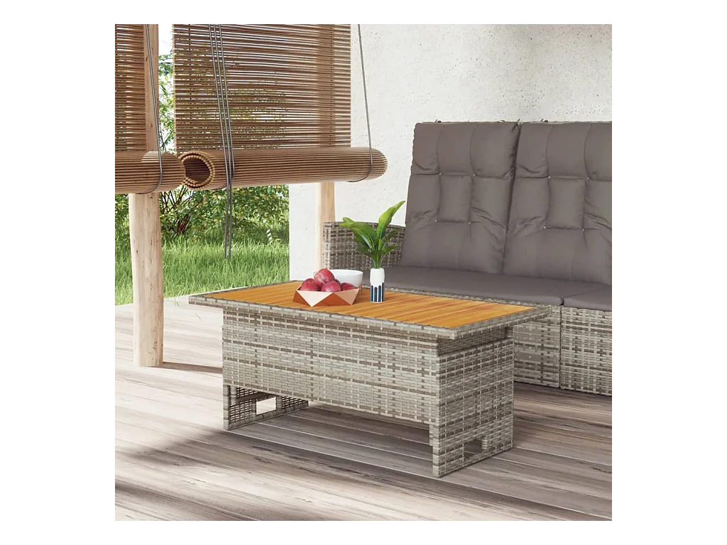 Table de jardin gris 100x50x43/63 cm acacia et résine tressée