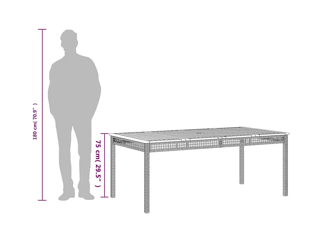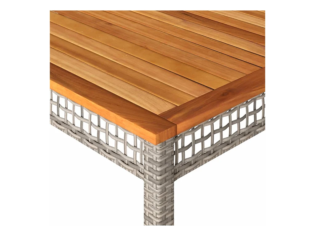 Table de jardin gris 180x90x75 cm résine tressée et bois acacia