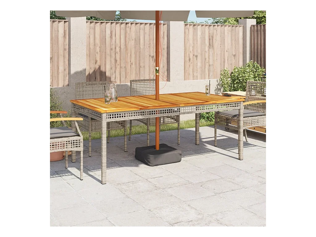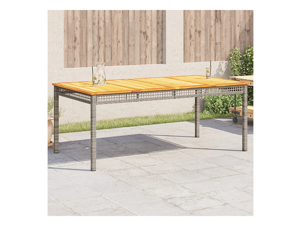 Table de jardin gris 180x90x75 cm résine tressée et bois acacia FR254107