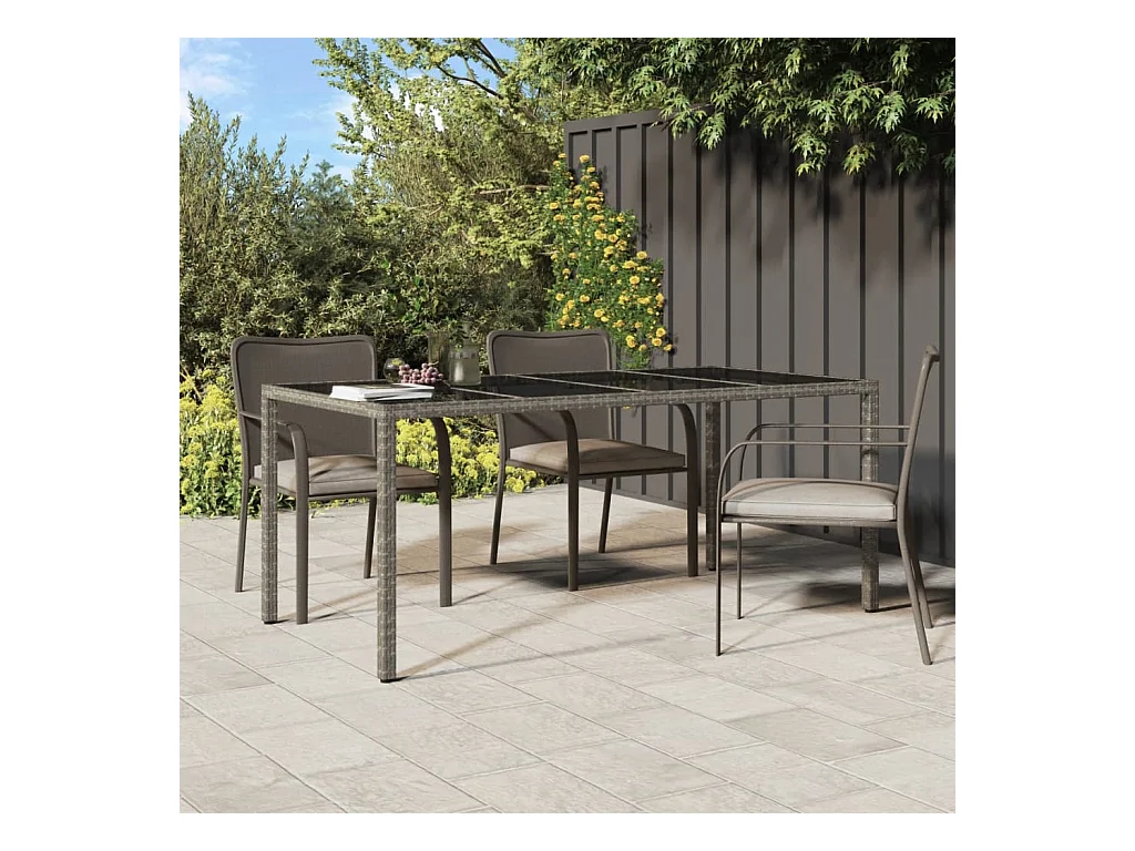 Table de jardin Gris 190x90x75 cm Verre trempé/résine tressée