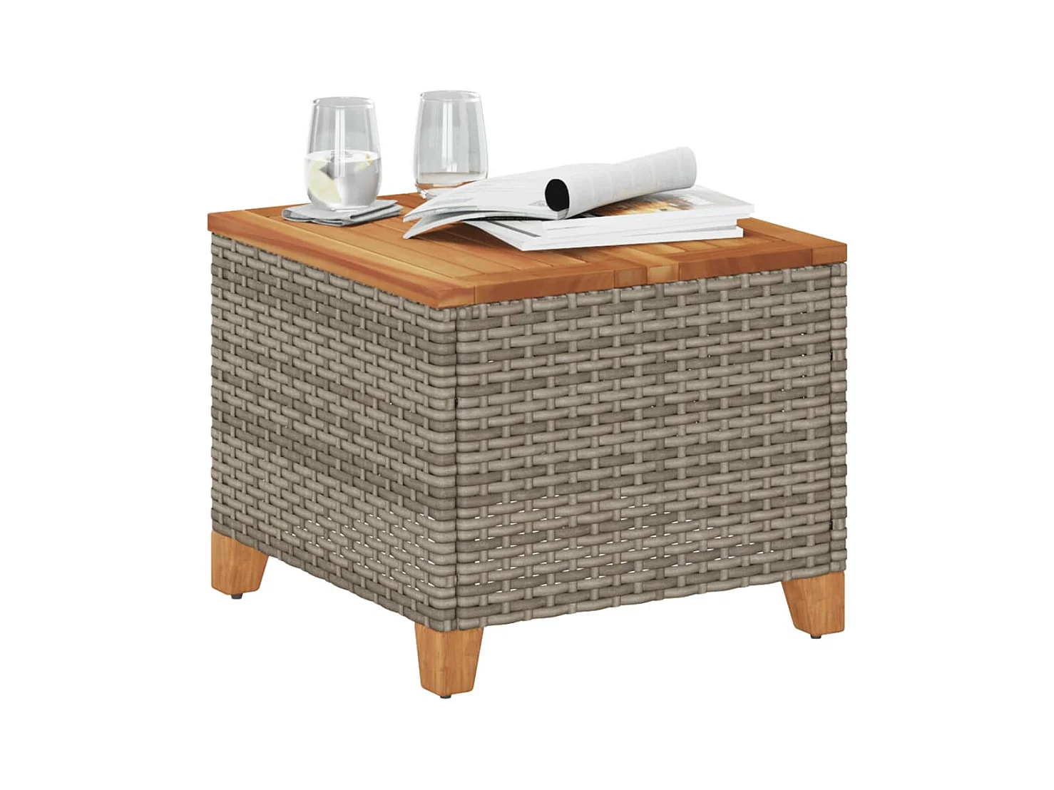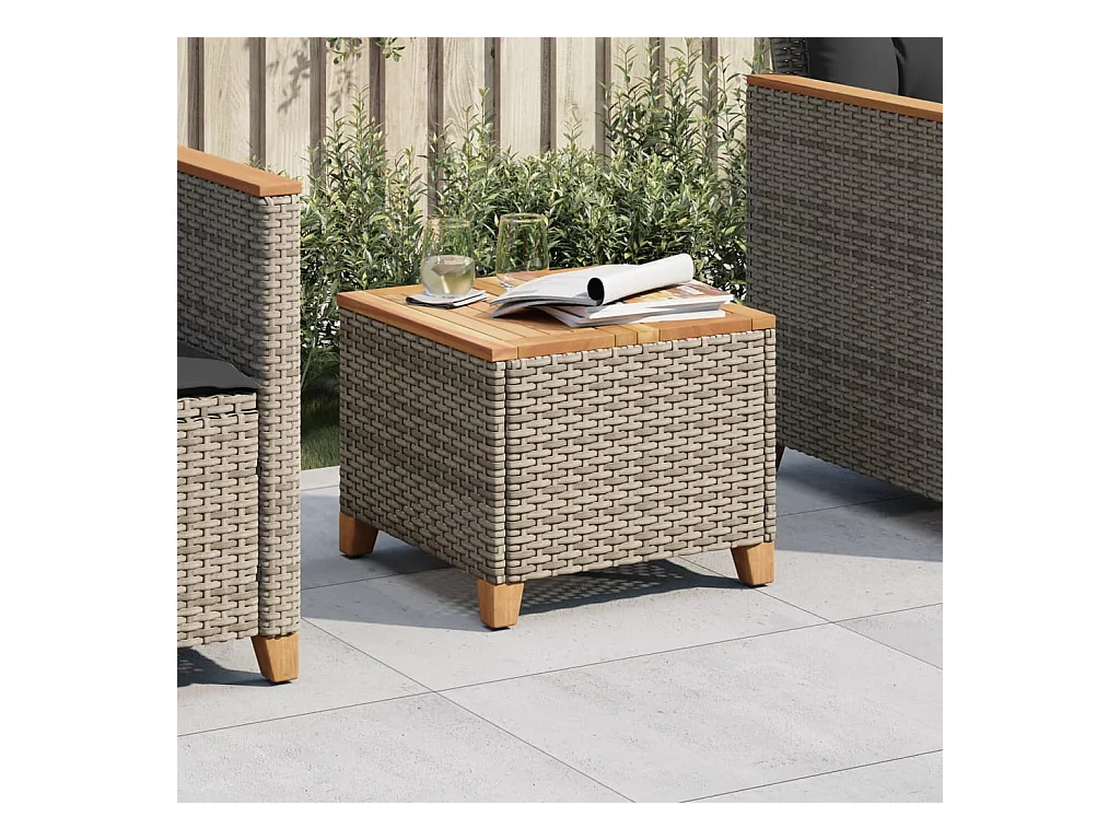 Table de jardin gris 45x45x37 cm résine tressée et bois acacia FR653403