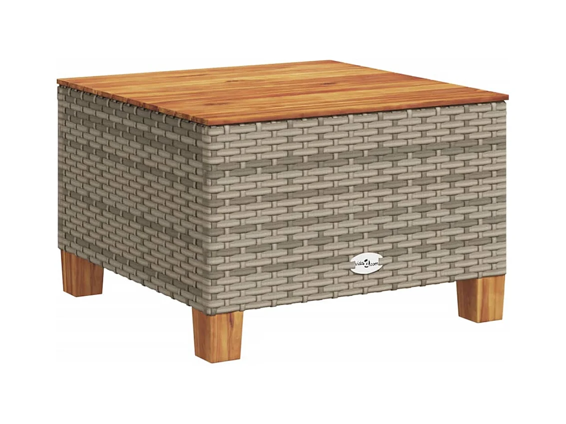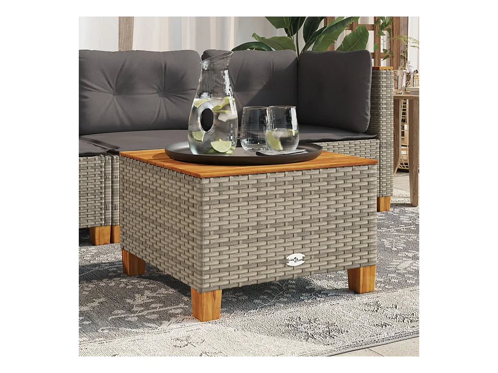 Table de jardin gris 55x55x36 cm résine tressée et bois acacia FR133128