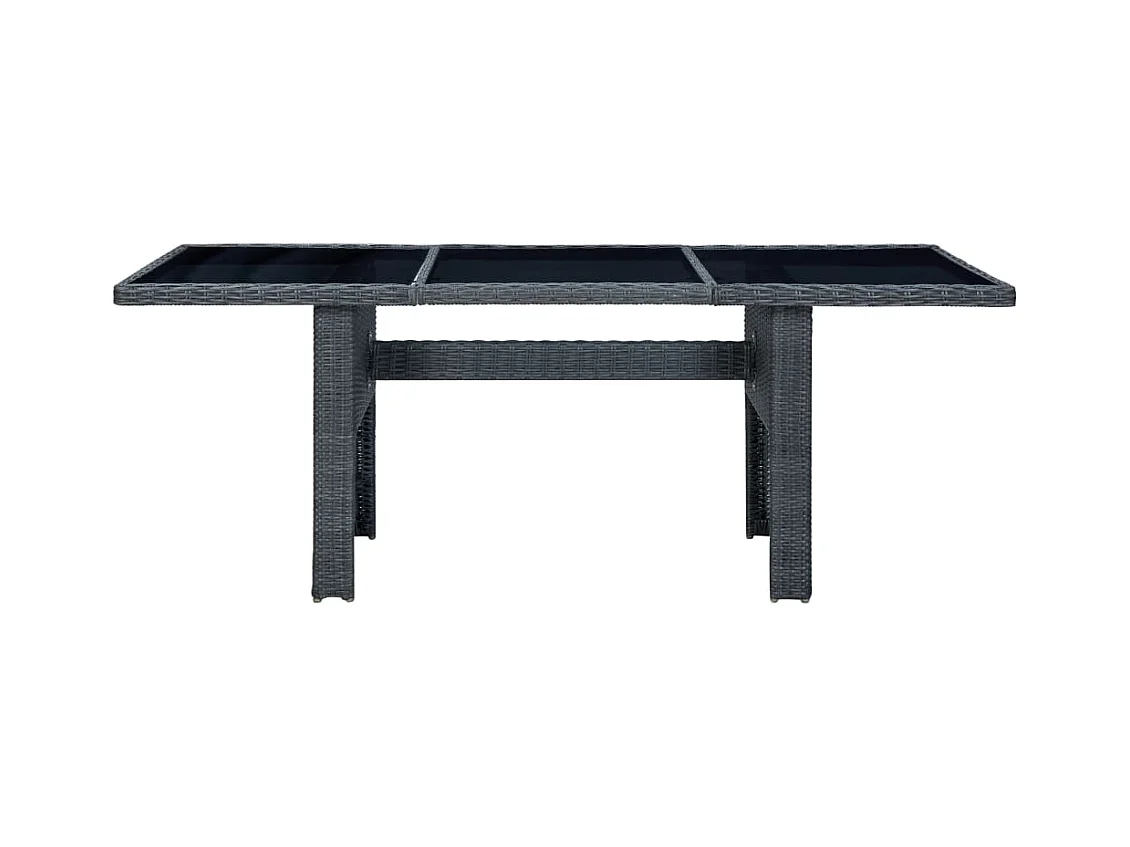Table de jardin dessus en verre gris 190x80x74cm résine tressée