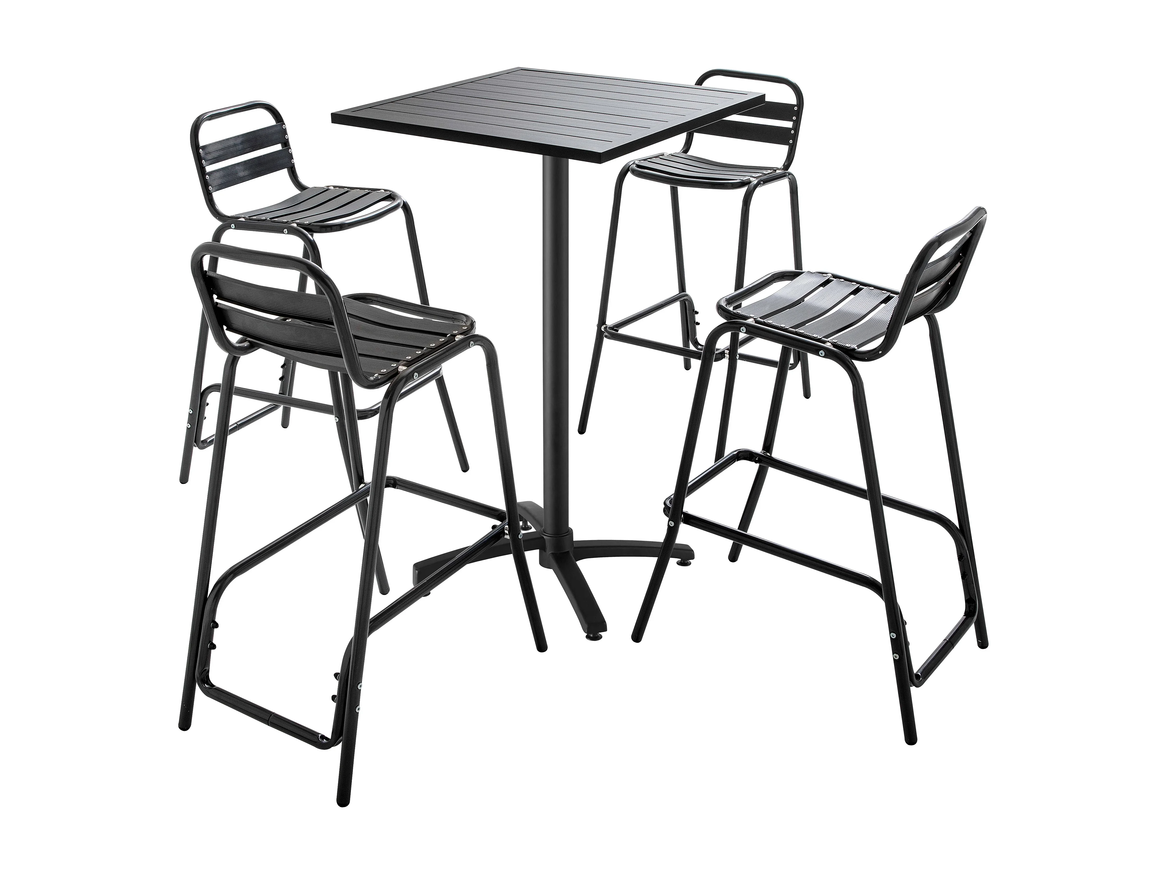 Table de jardin mange-debout et 4 chaises en aluminium gris