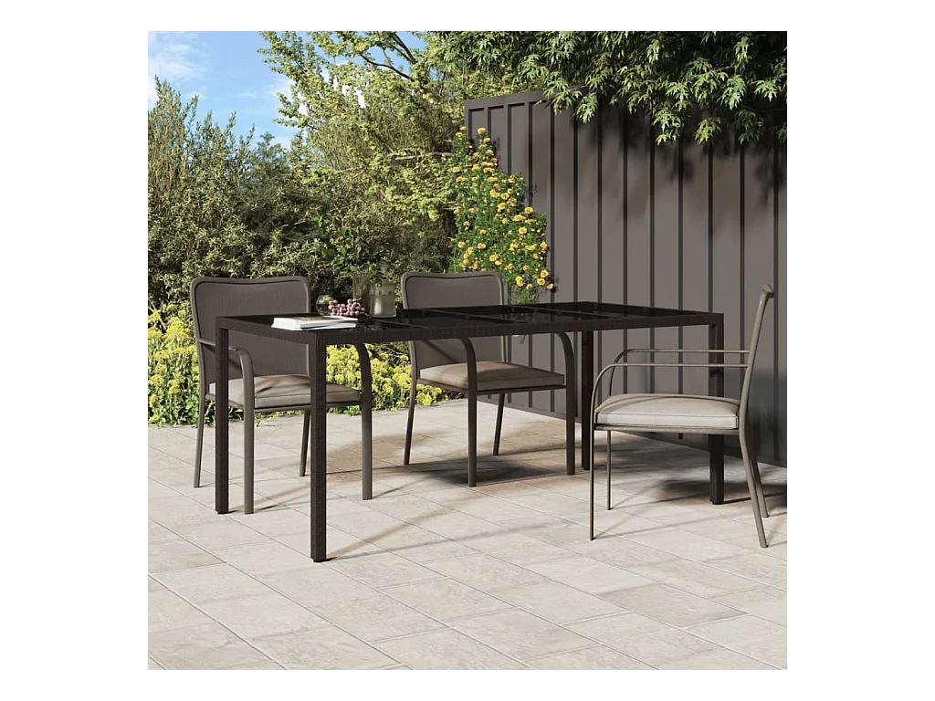 Table de jardin 150x90x75 cm Verre trempé/résine tressée Marron