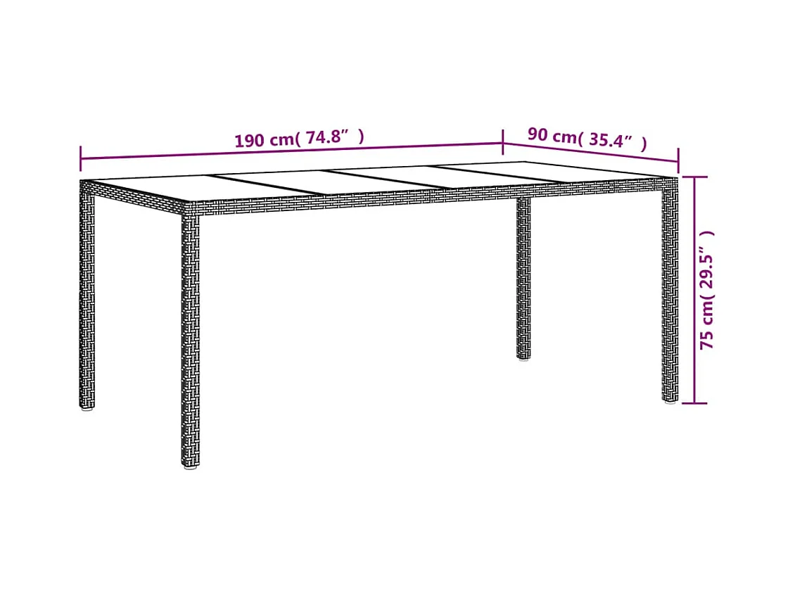 Table de jardin Marron 190x90x75 cm Verre trempé/résine tressée