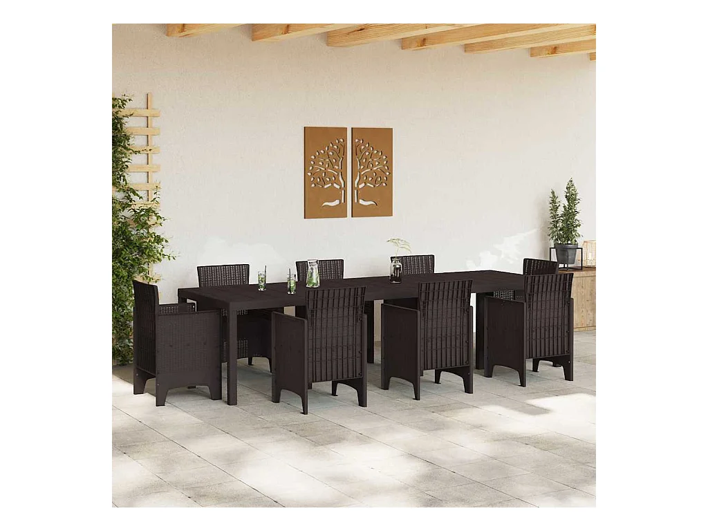 Ensemble de salle à manger pour jardin 9 pcs Marron