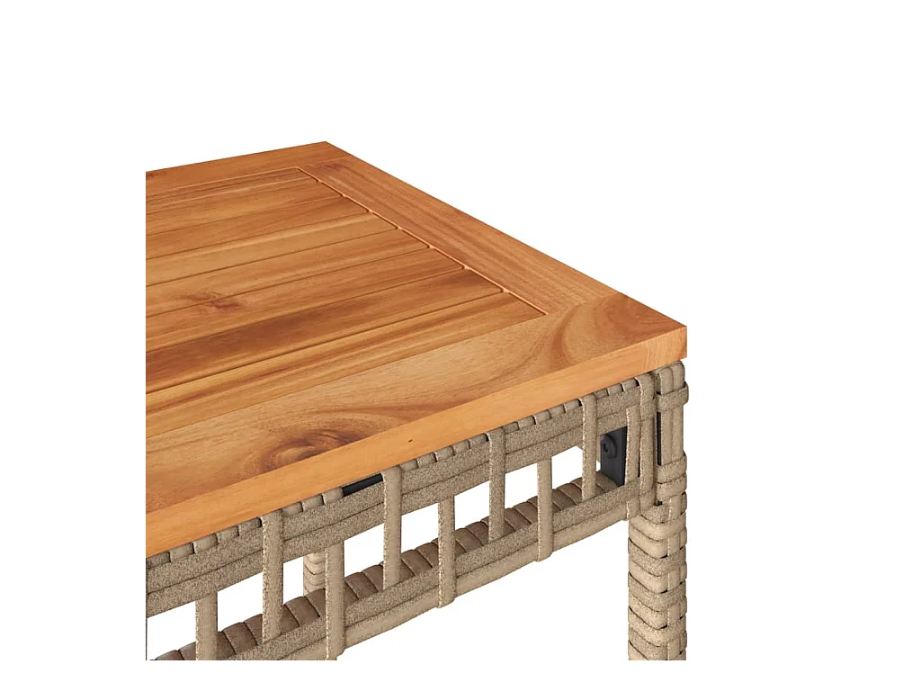 Table de jardin beige 70x38x42 cm résine tressée et bois acacia