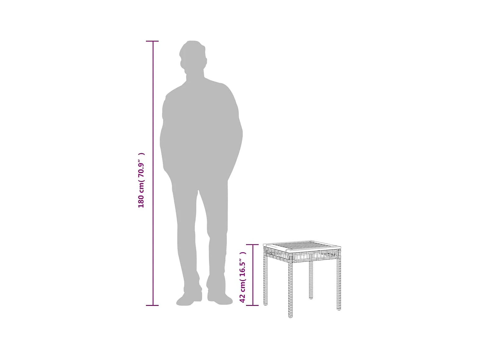 Table de jardin beige 45x45x37 cm résine tressée et bois acacia