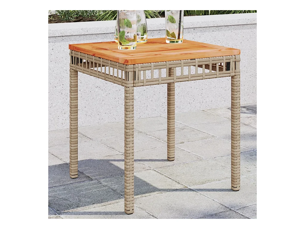 Table de jardin beige 40x40x42 cm résine tressée et bois acacia FR516942