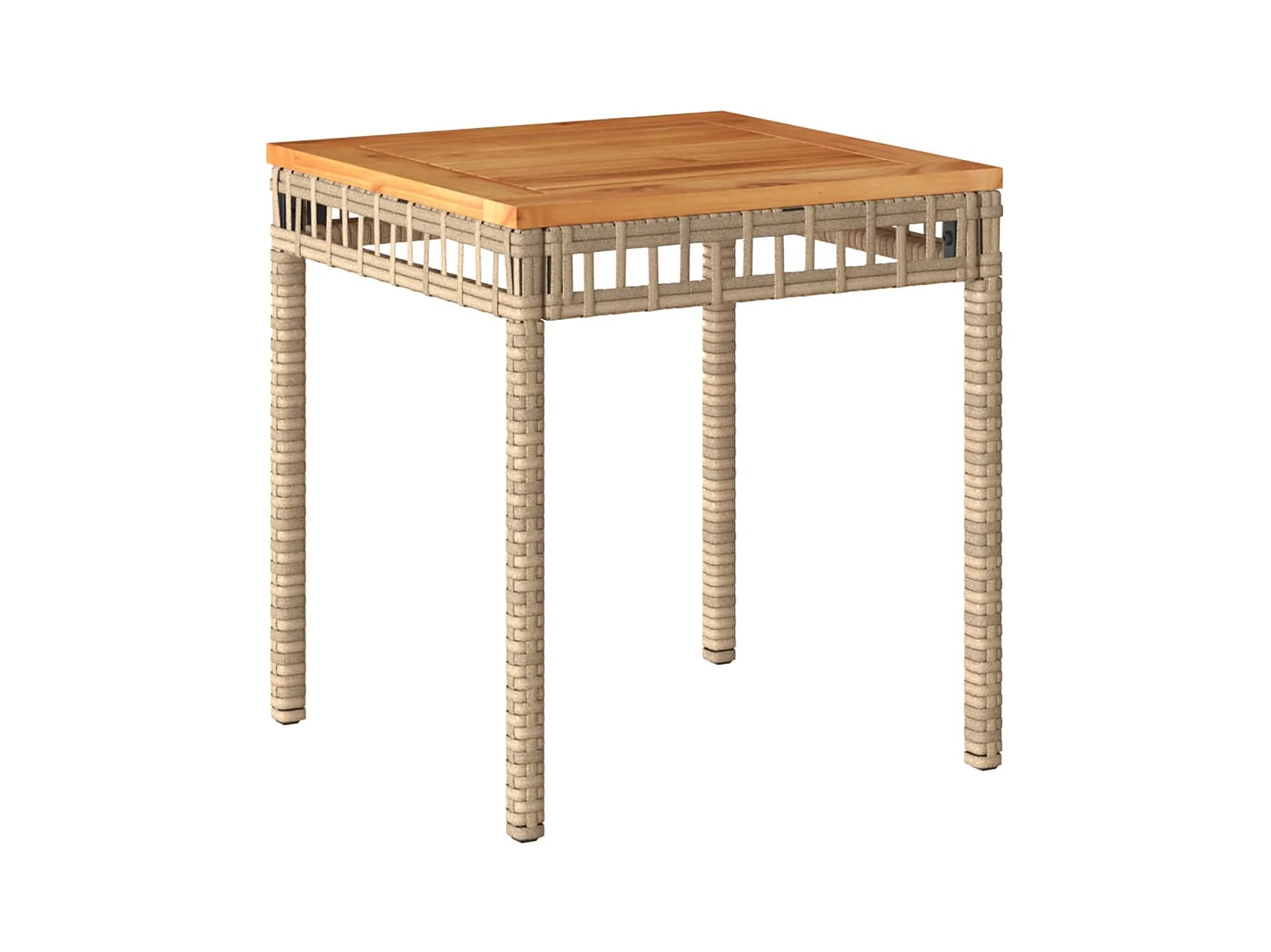 Table de jardin beige 80x80x75 cm résine tressée et bois acacia FR405007