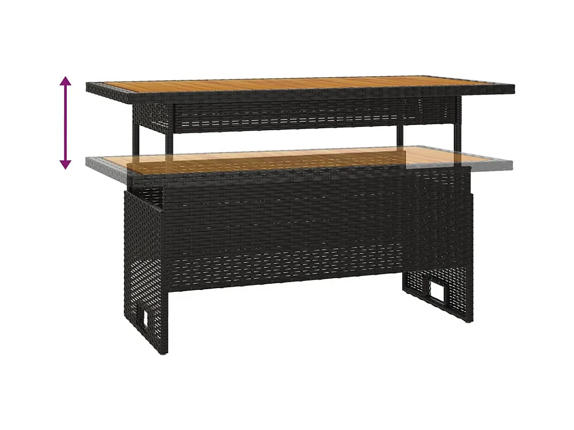 Table de jardin noir 100x50x43/63 cm acacia et résine tressée