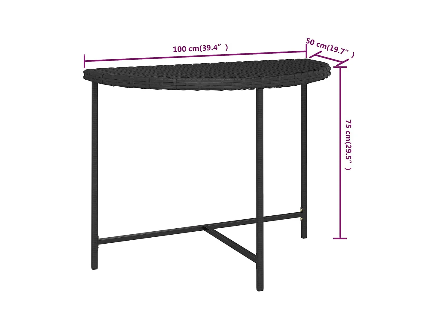 Table de jardin Noir 100x50x75 cm Résine tressée