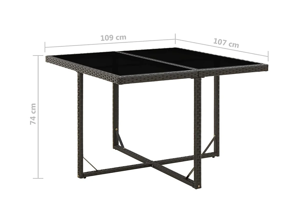 Table de jardin Noir 109x107x74 cm Résine tressée et verre GHR73012