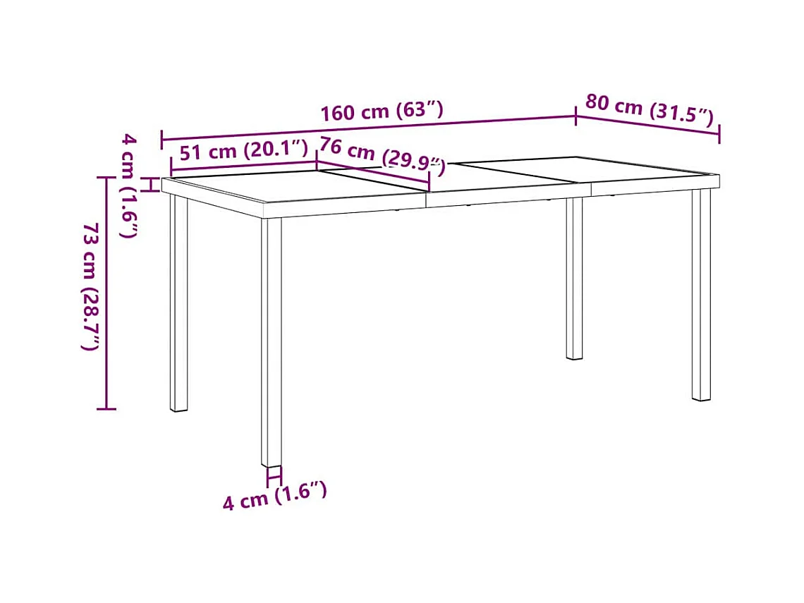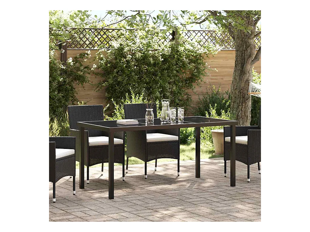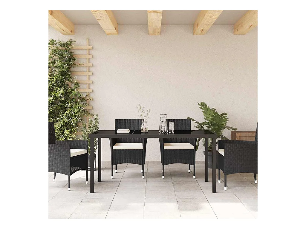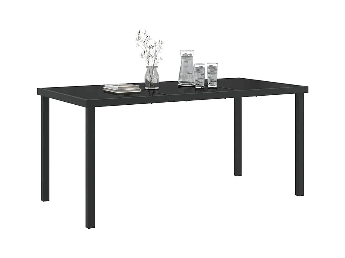 Table à dîner de jardin Noir 160x80x74 cm Acier et verre trempé