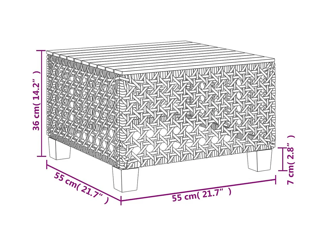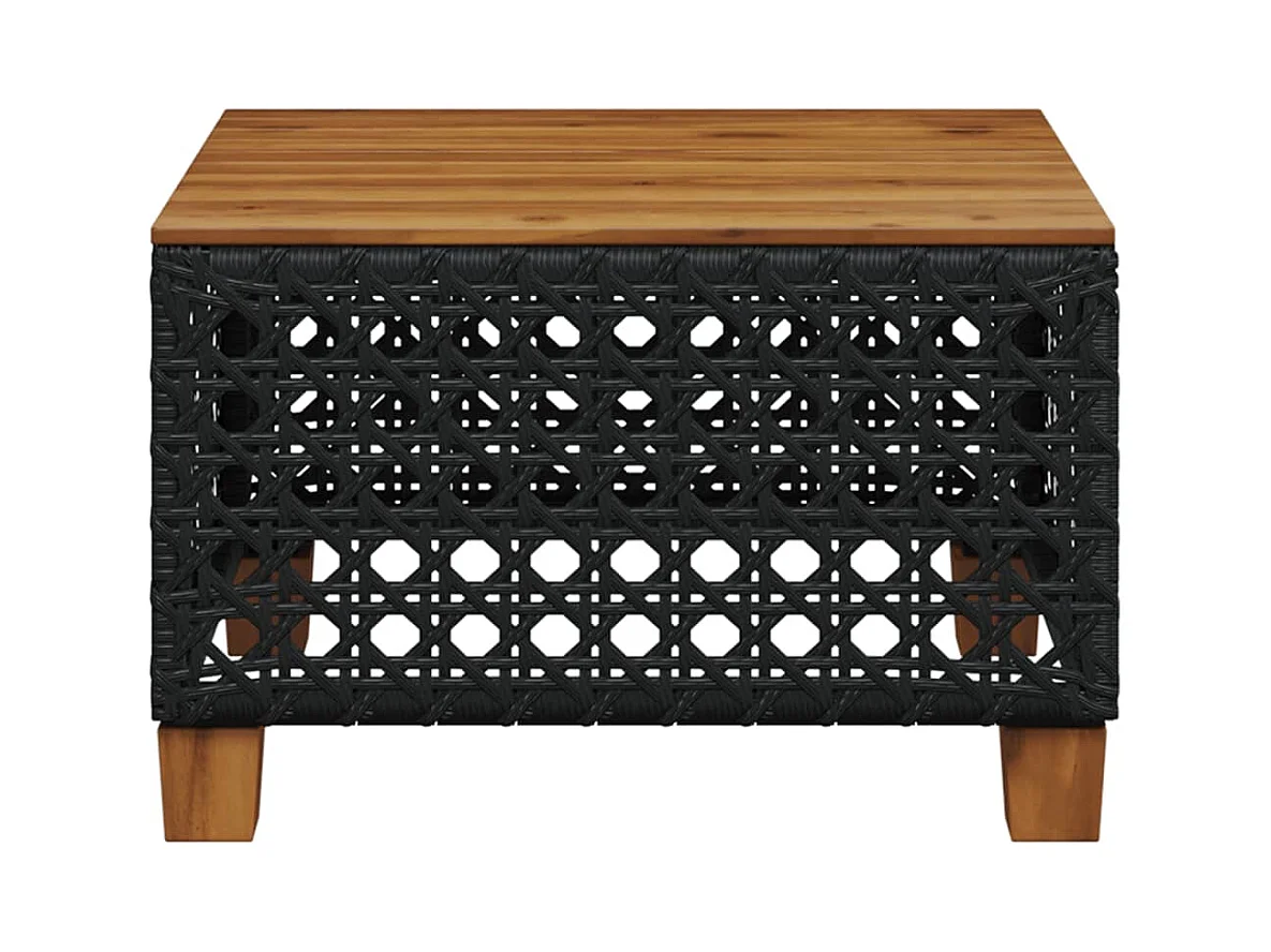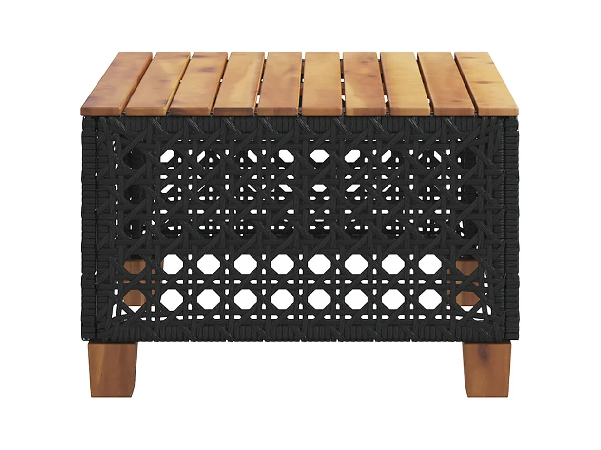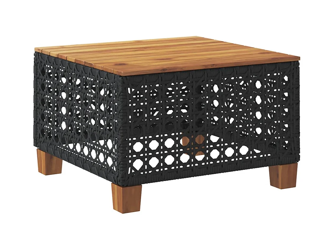 Table de jardin noir 55x55x36 cm résine tressée et bois acacia