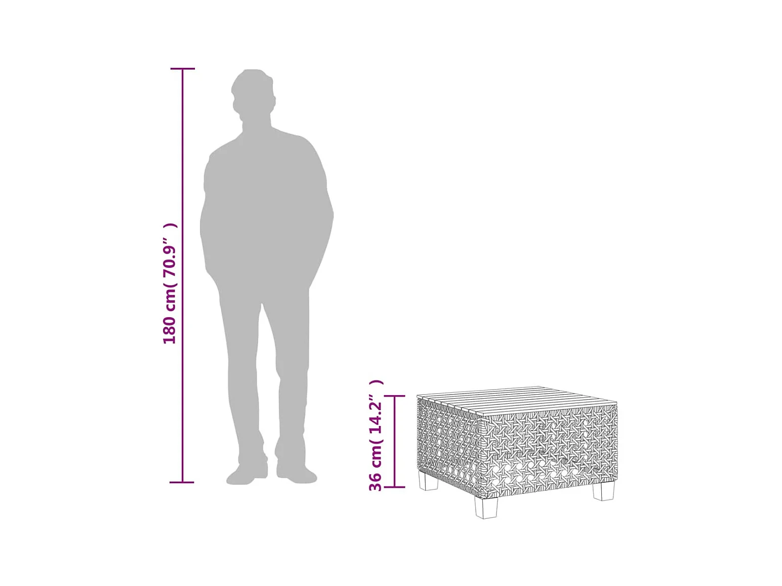 Table de jardin dessus en bois Noir 90x90x75 cm Résine tressée