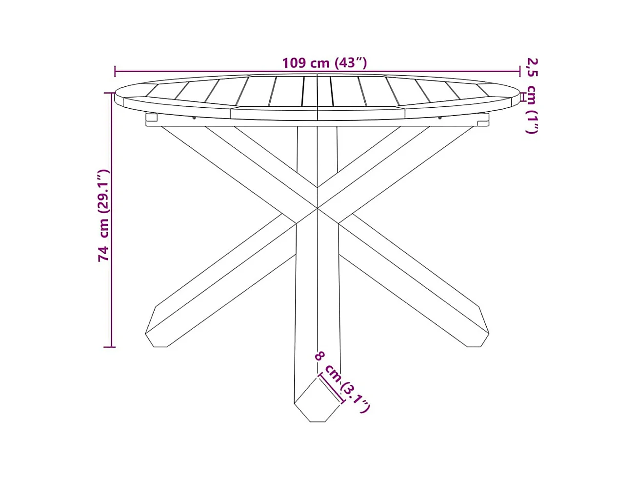 Table de jardin Ø109x74 cm bois de teck solide
