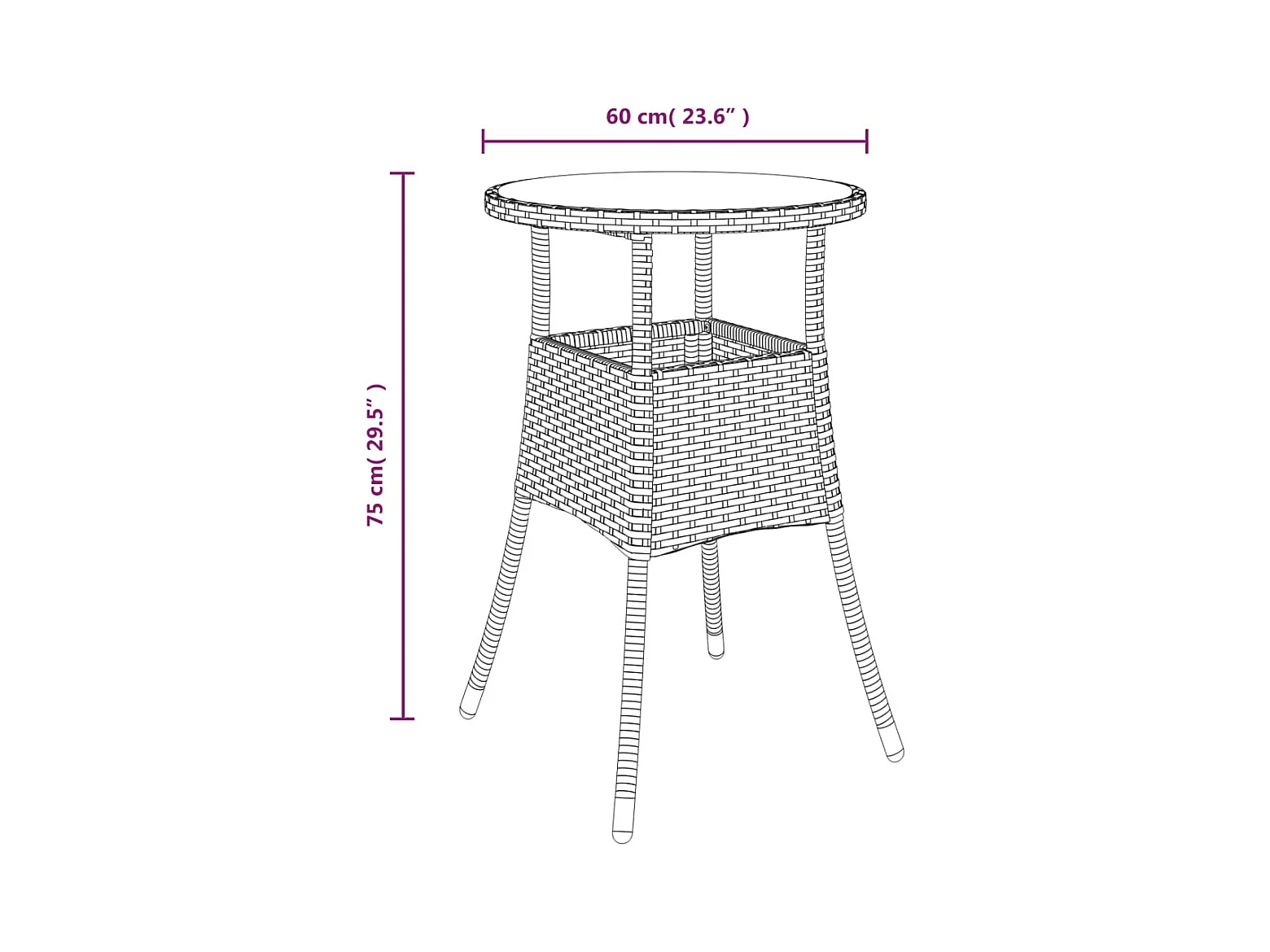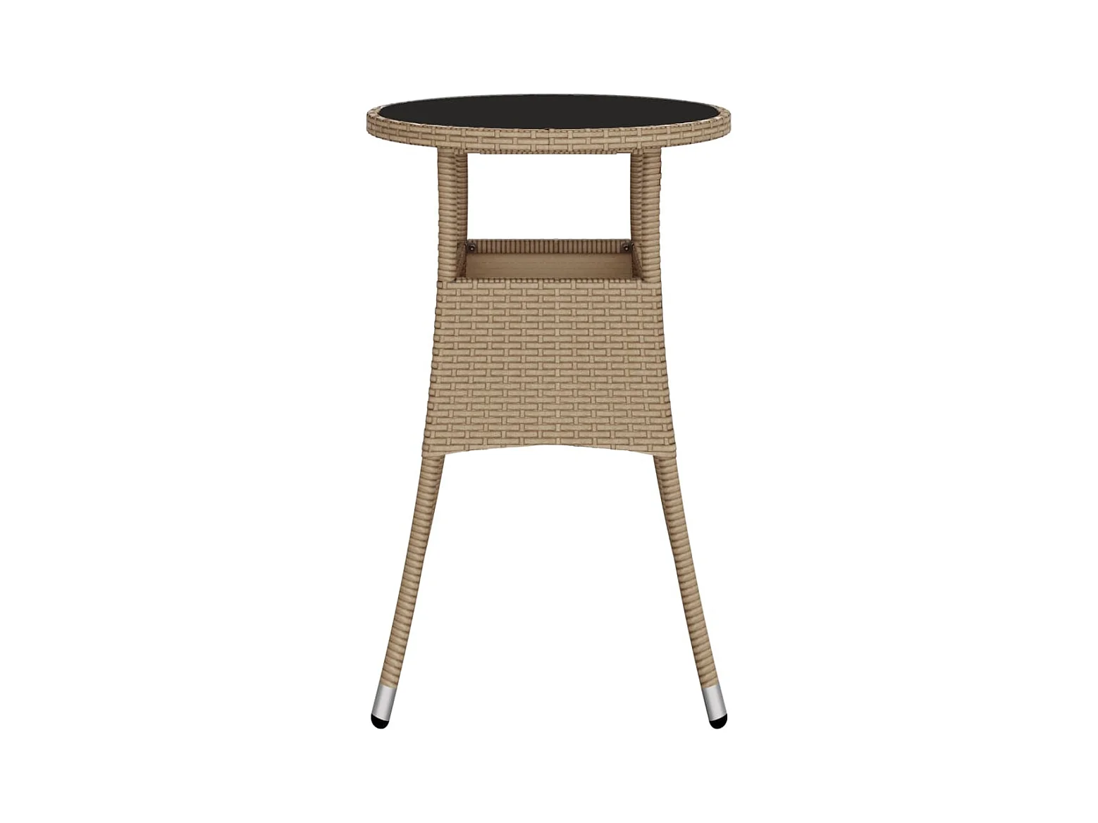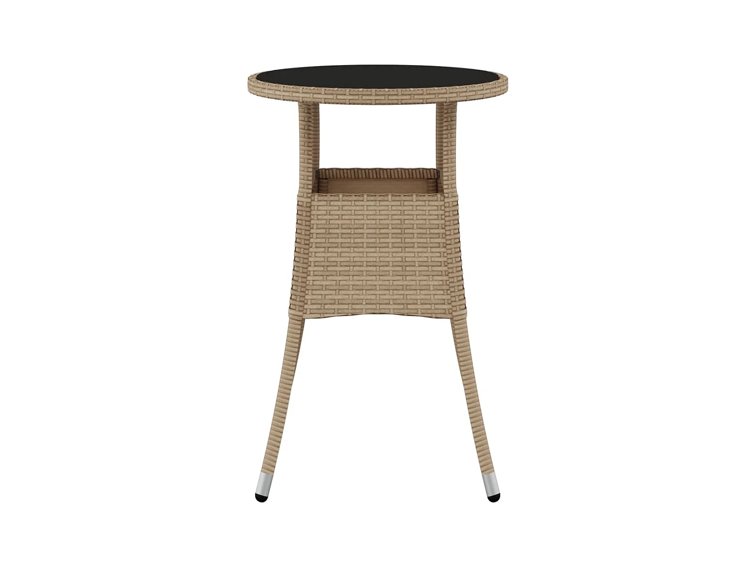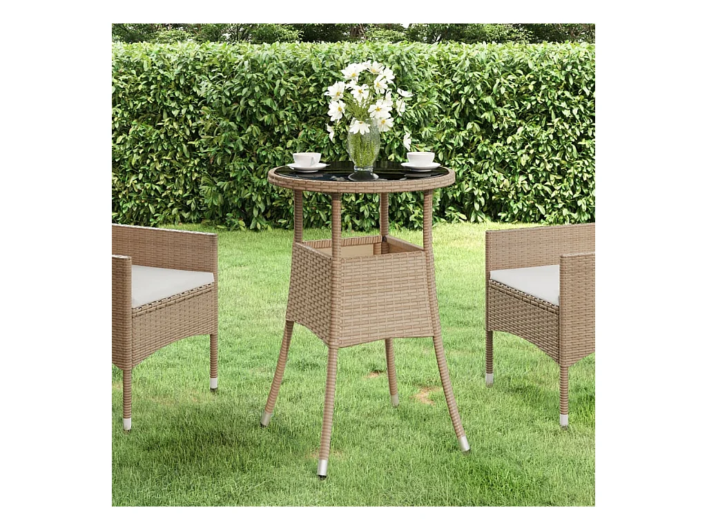 Table de jardin Ø60x75 cm Verre trempé/résine tressée Beige
