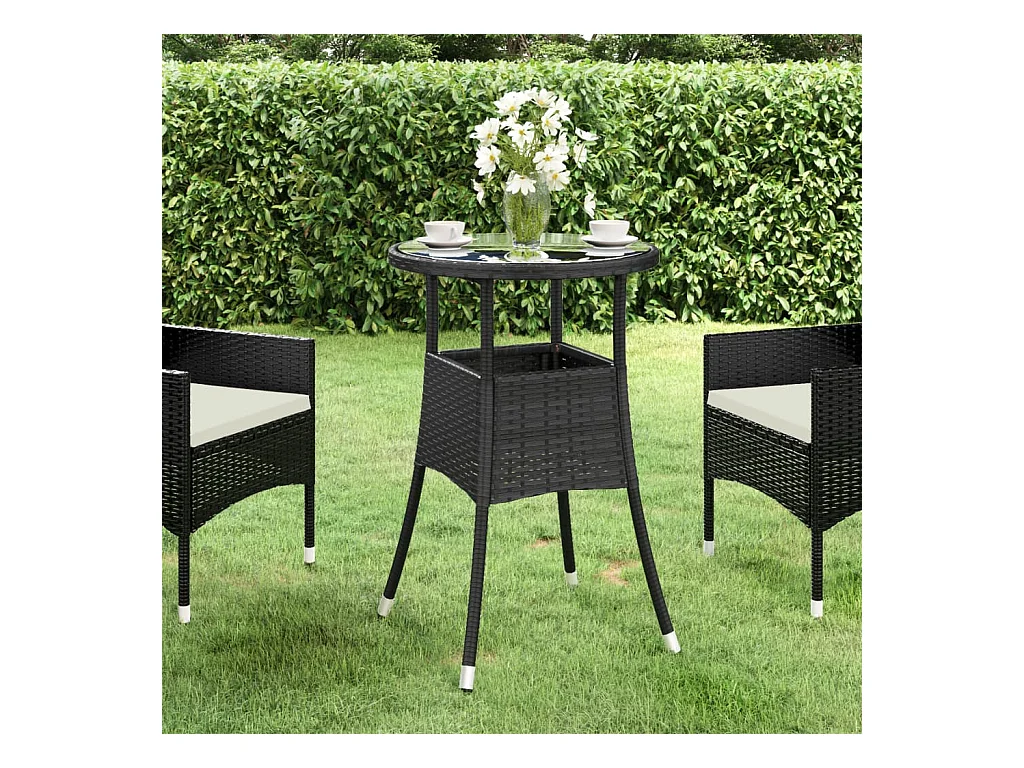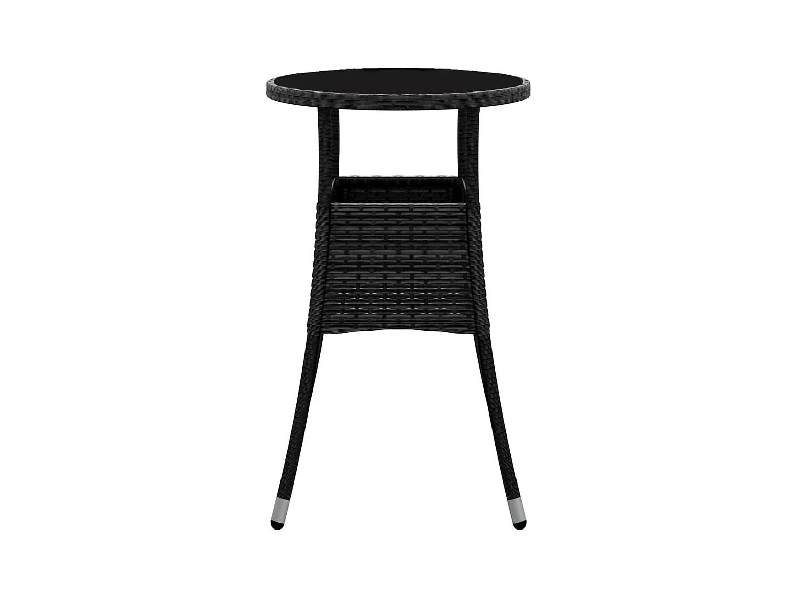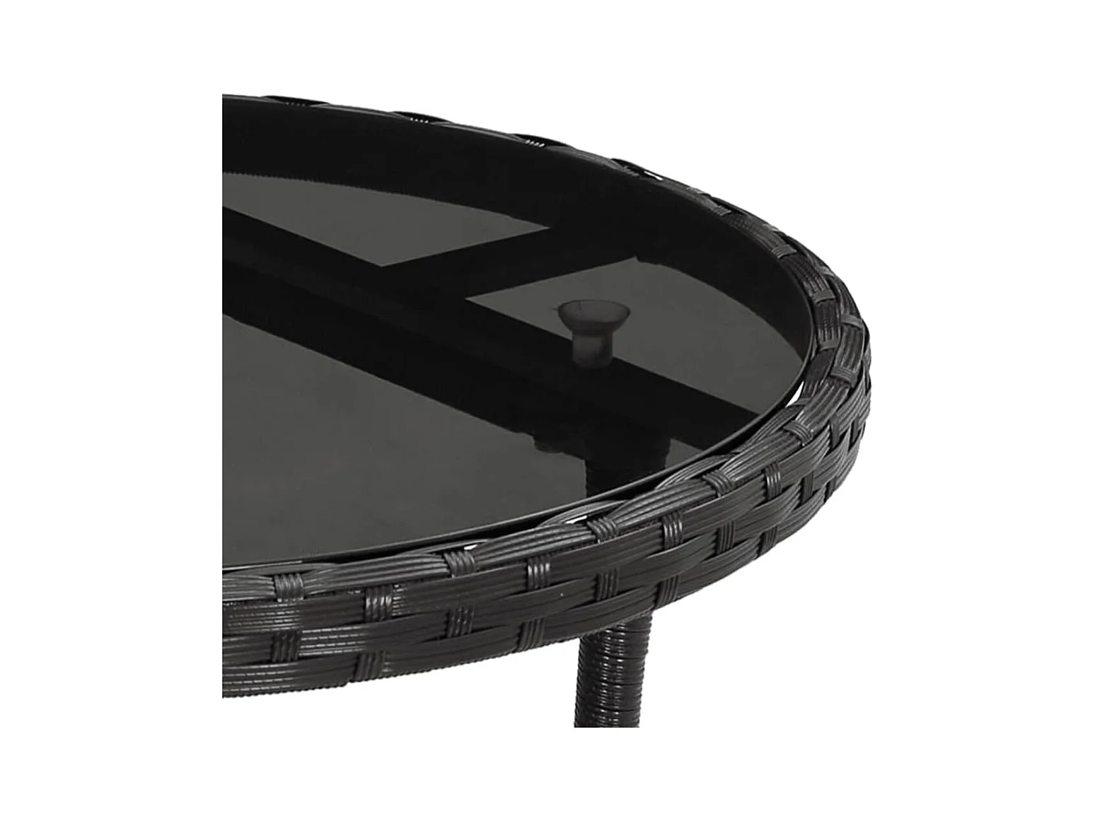 Table de jardin Ø60x75 cm Verre trempé/résine tressée Noir