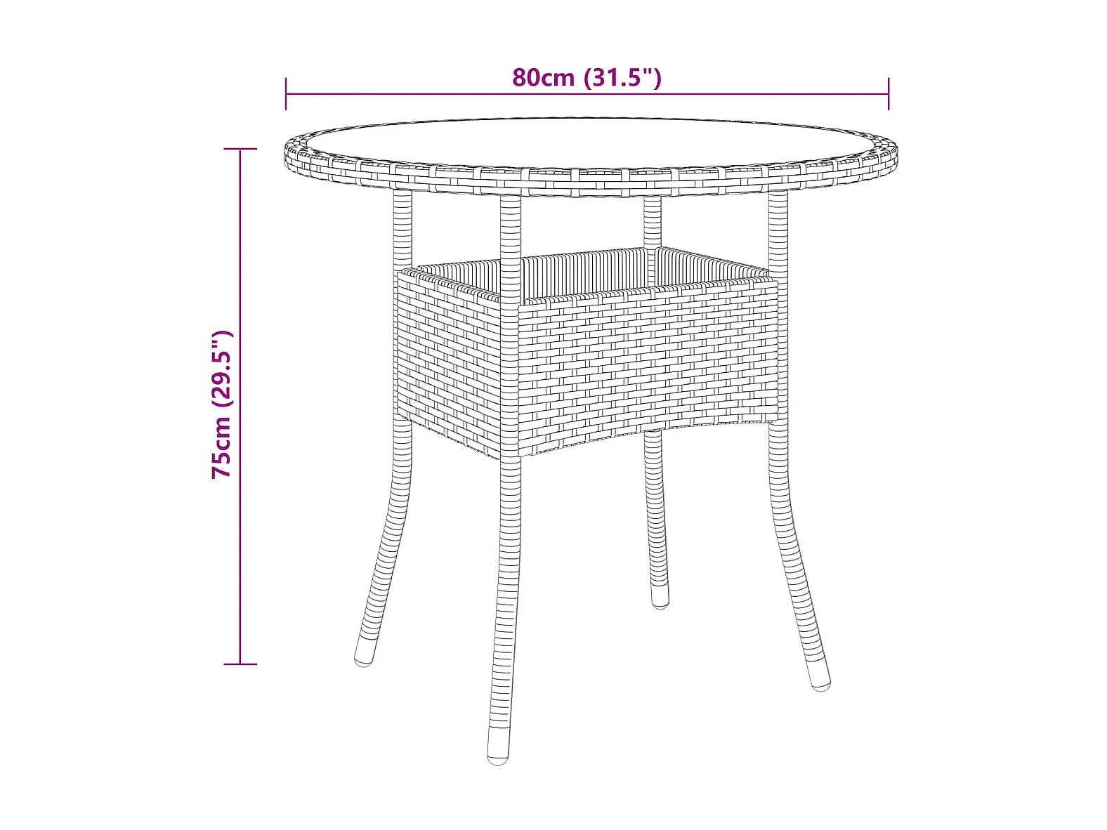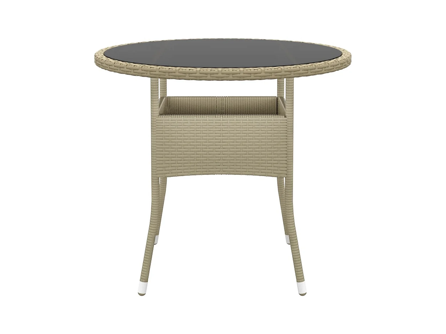 Table de jardin Ø80x75 cm Verre trempé/résine tressée Beige