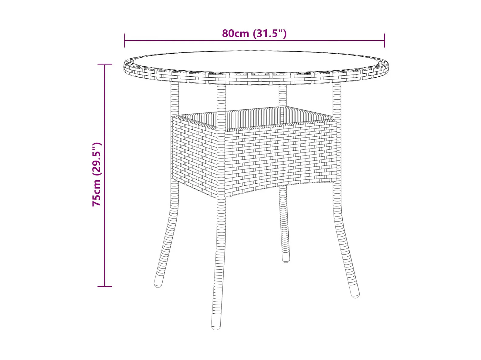 Table de jardin Ø80x75 cm Verre trempé/résine tressée Noir GHR77417