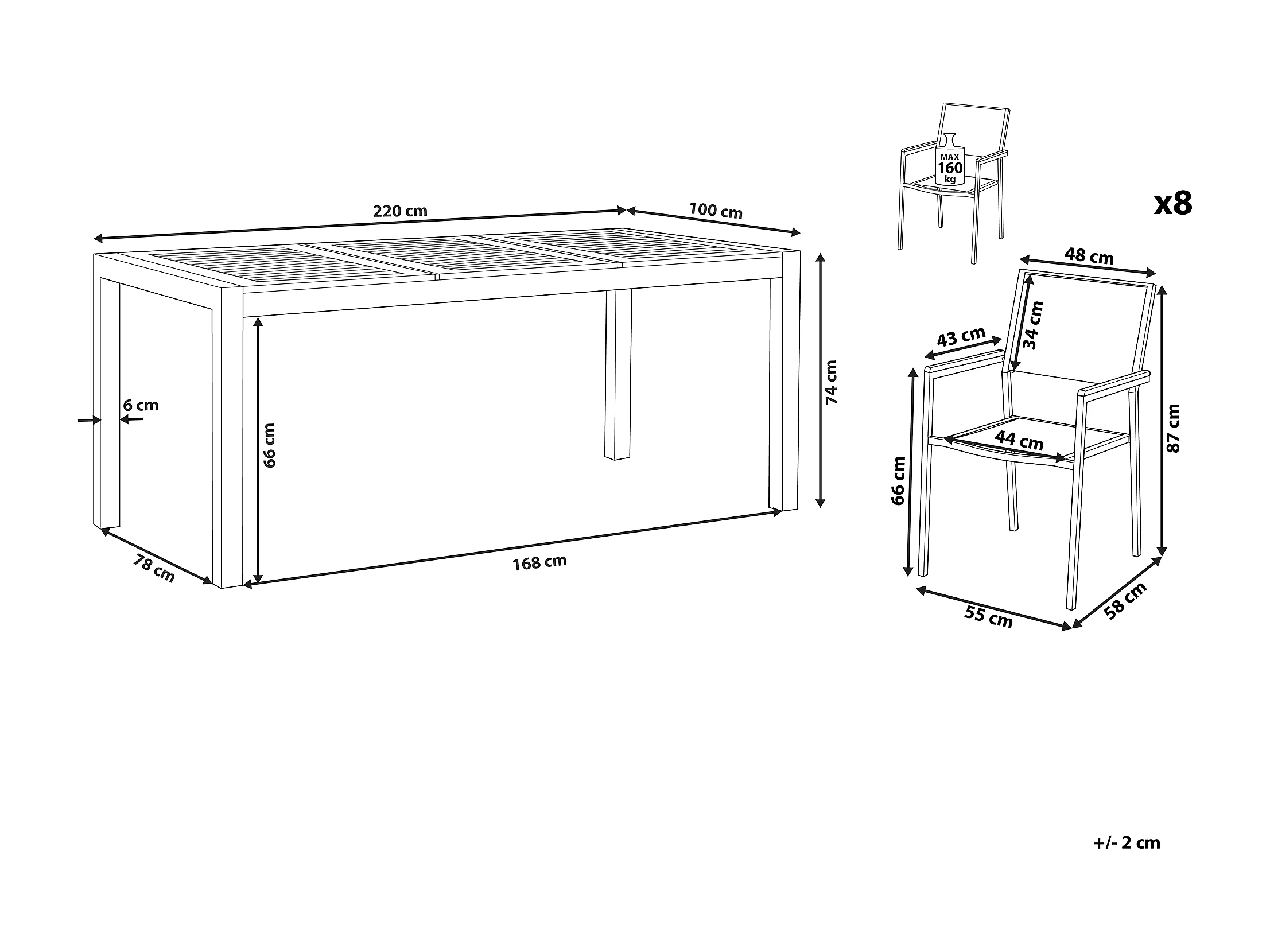 Salle à manger de jardin 8 places GROSSETO Bois d'eucalyptus Marron/blanc