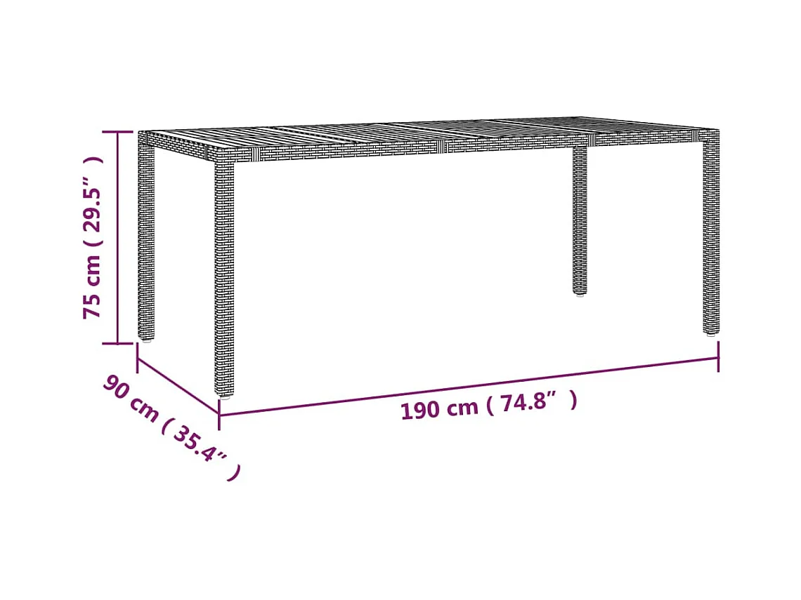 Table de jardin dessus en bois Noir 190x90x75 cm Résine tressée