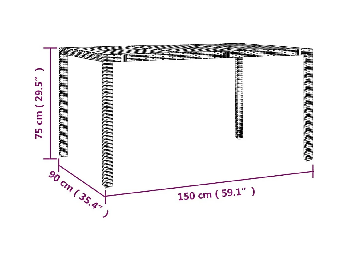 Table de jardin dessus en bois Noir 150x90x75 cm Résine tressée