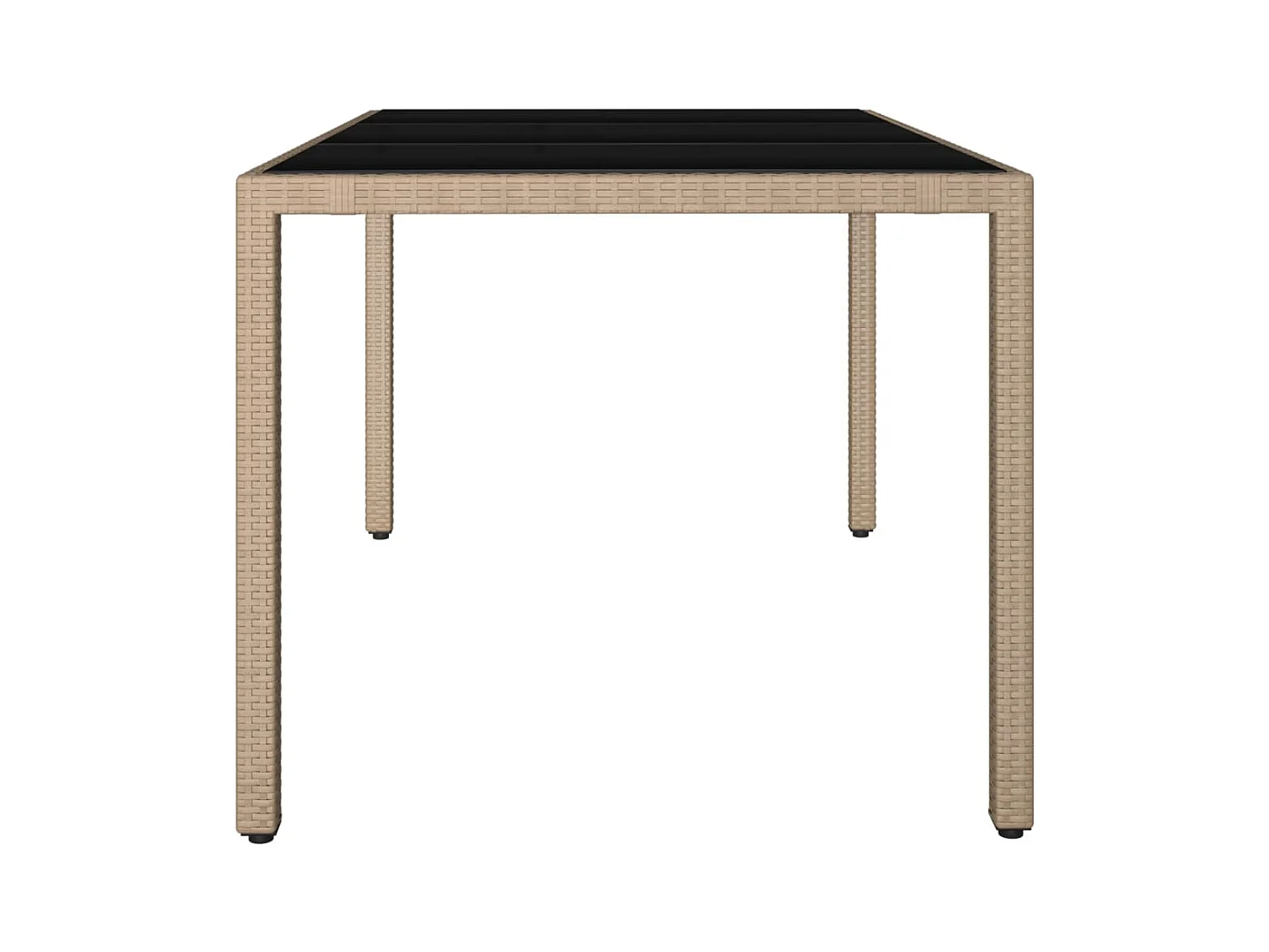 Table de jardin 200x150x75 cm Verre trempé/résine tressée Beige