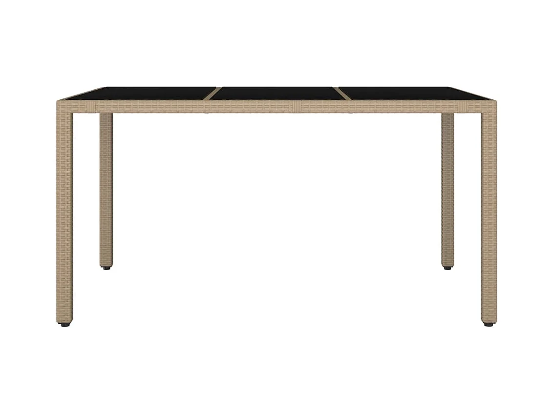 Table de jardin 150x90x75 cm Verre trempé/résine tressée Beige