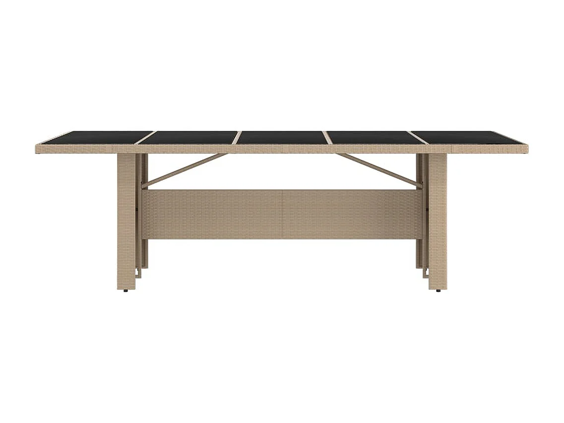 Table de jardin Beige 190x90x75 cm Verre trempé/résine tressée