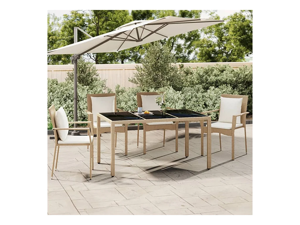Table de jardin 150x90x75 cm Verre trempé/résine tressée Beige GHR81703