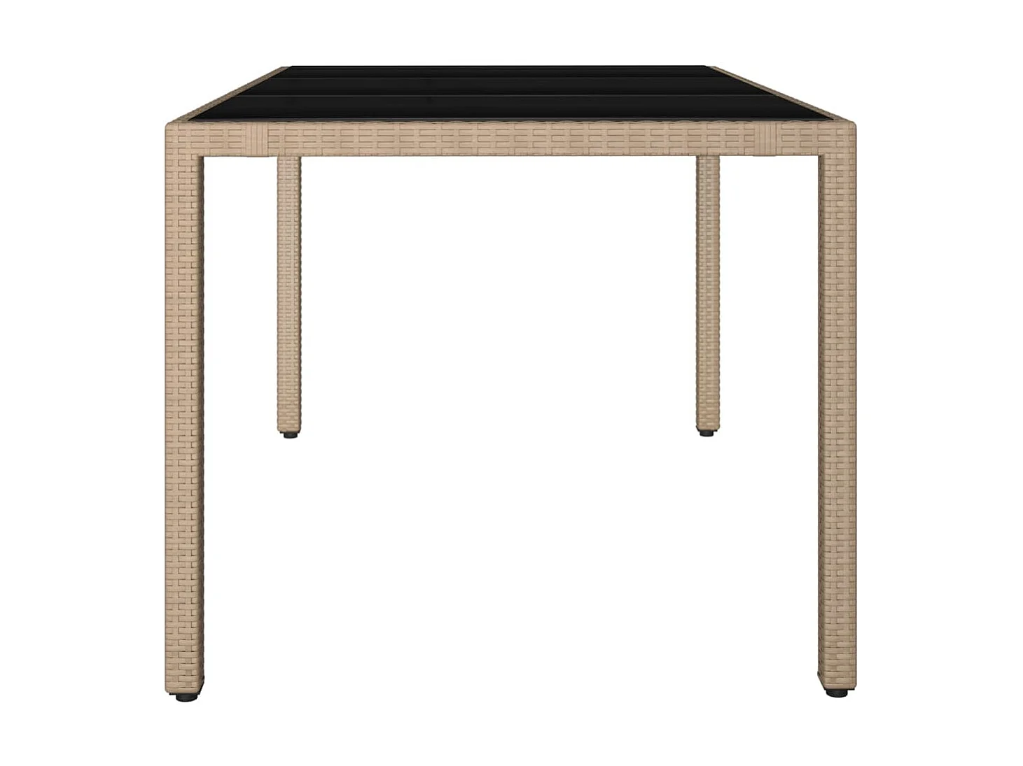 Table de jardin 150x90x75 cm Verre trempé/résine tressée Beige GHR17772