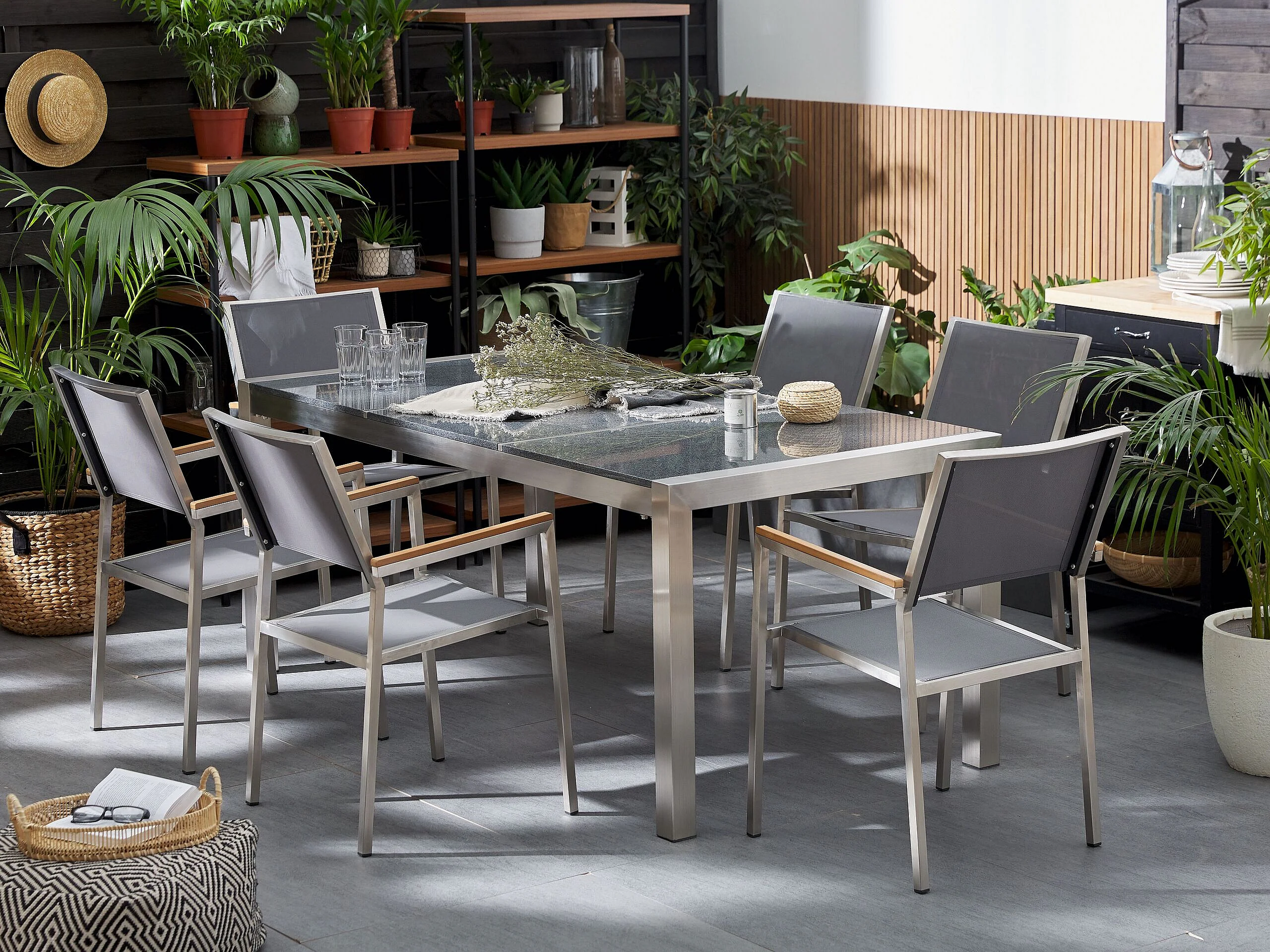 Salle à manger de jardin 6 places GROSSETO Triple plaque Granit Poli Gris