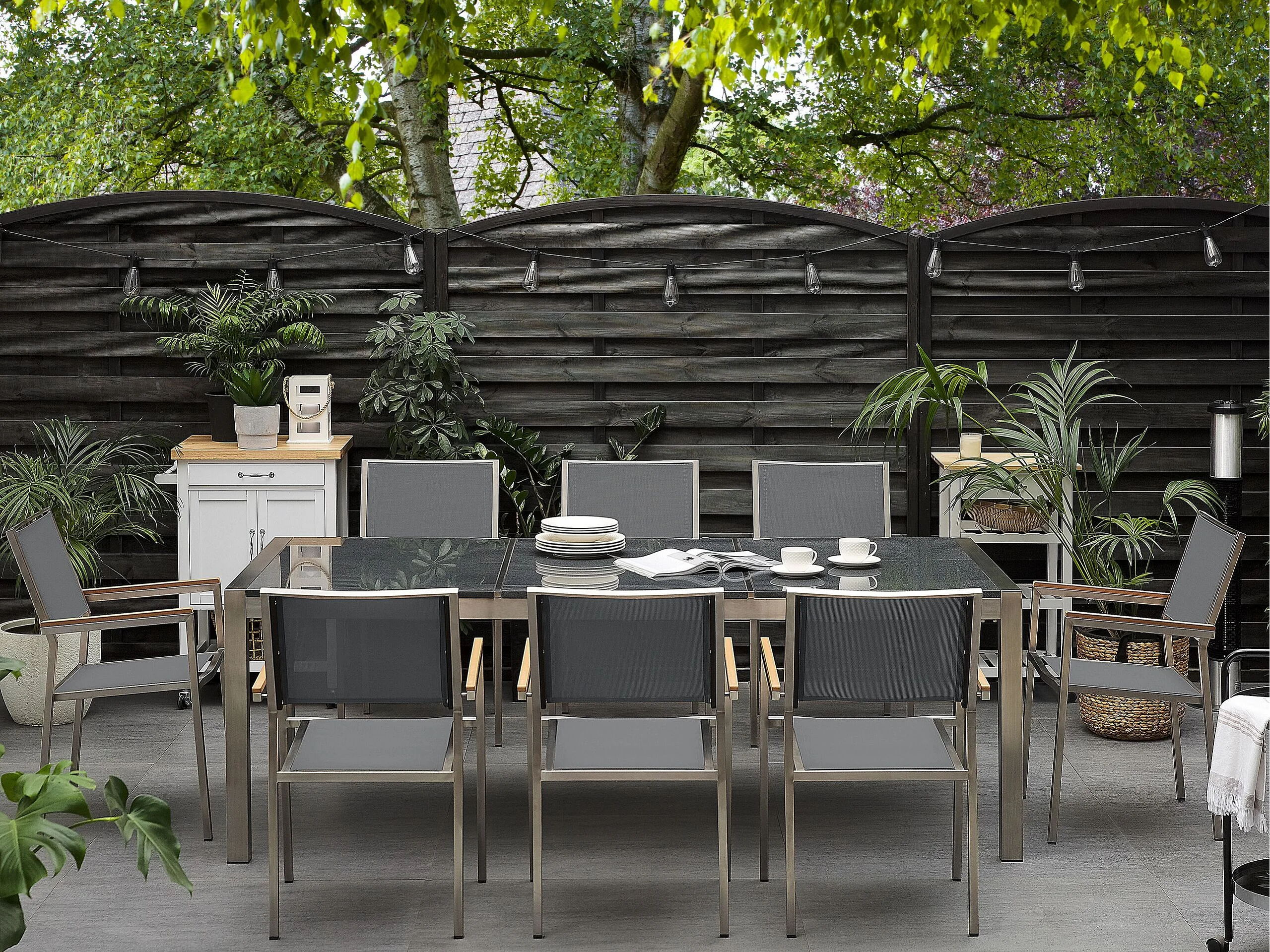 Salle à manger de jardin 8 places GROSSETO Triple plaque Granit Poli Gris