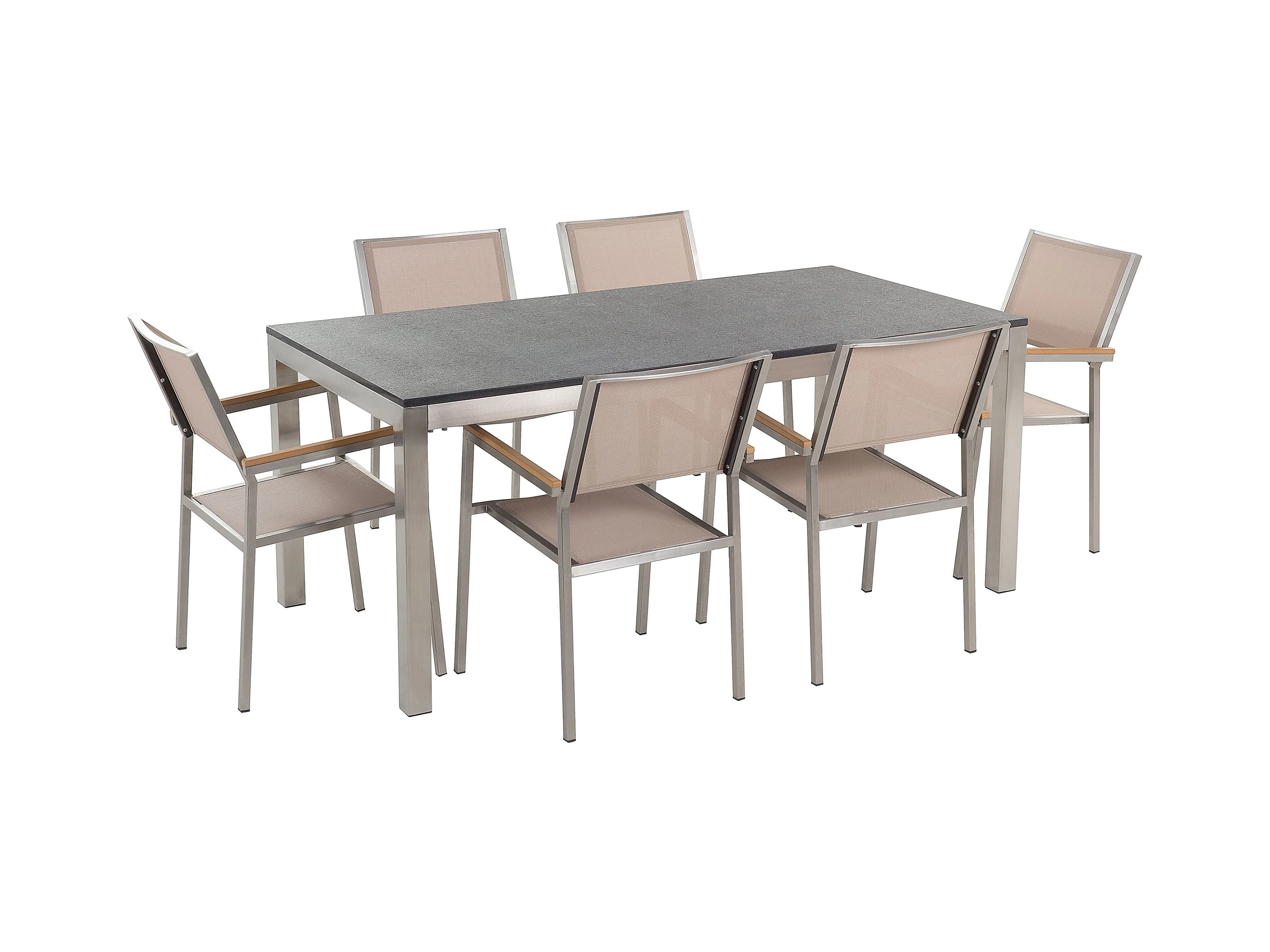 Salle à manger de jardin 6 places GROSSETO Granit Flammé Noir/beige
