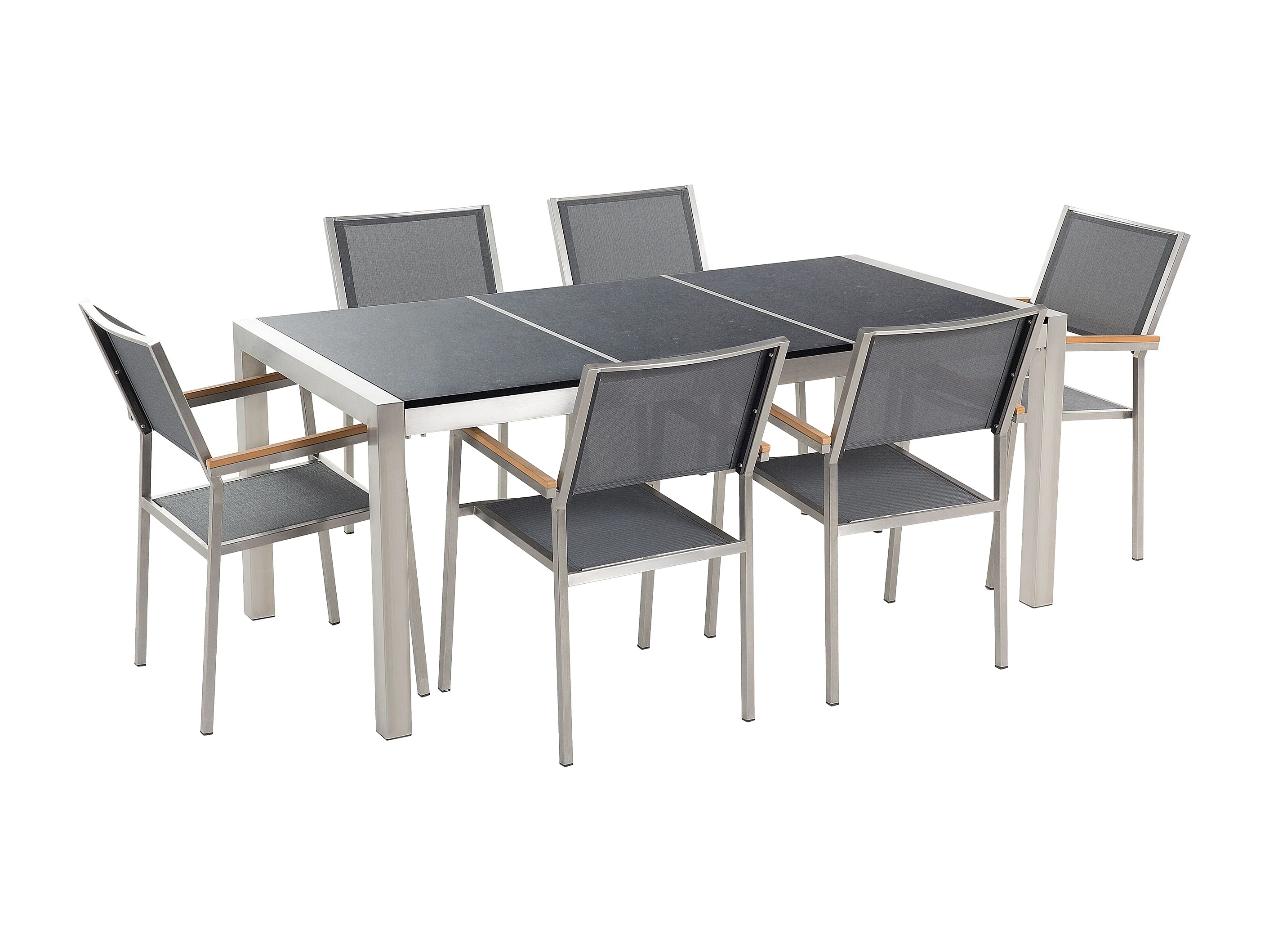 Salle à manger de jardin 6 places GROSSETO Triple plaque Granit Poli Gris/noir