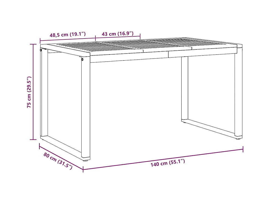 Table de jardin pour repas Gris 140 x 80 x 75 cm
