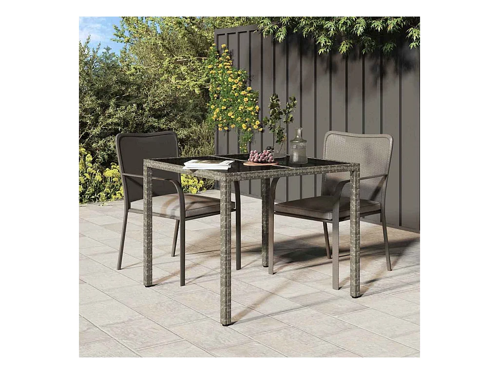 Table de jardin pour repas Gris 90 x 90 x 75 cm Poly rotin