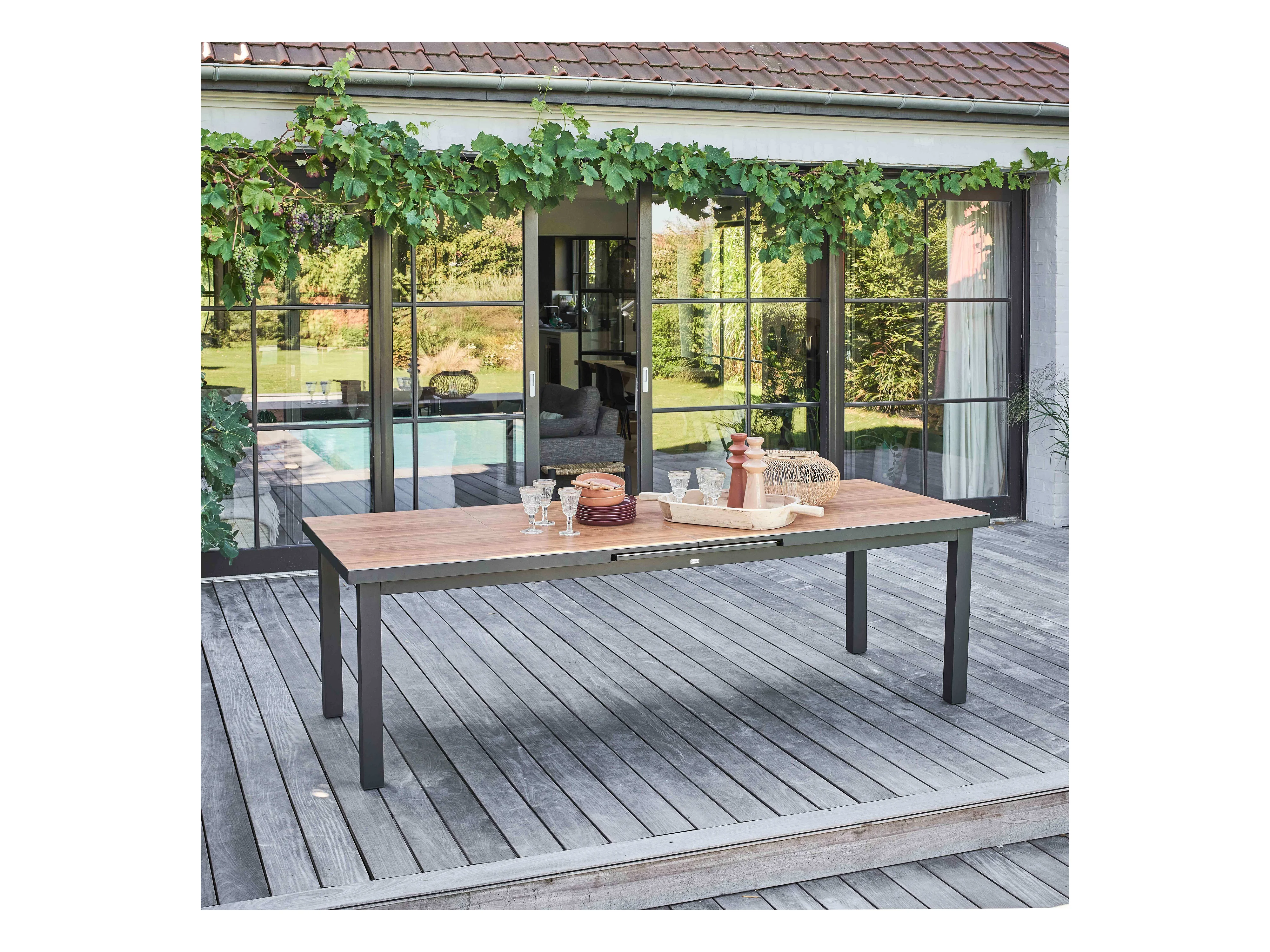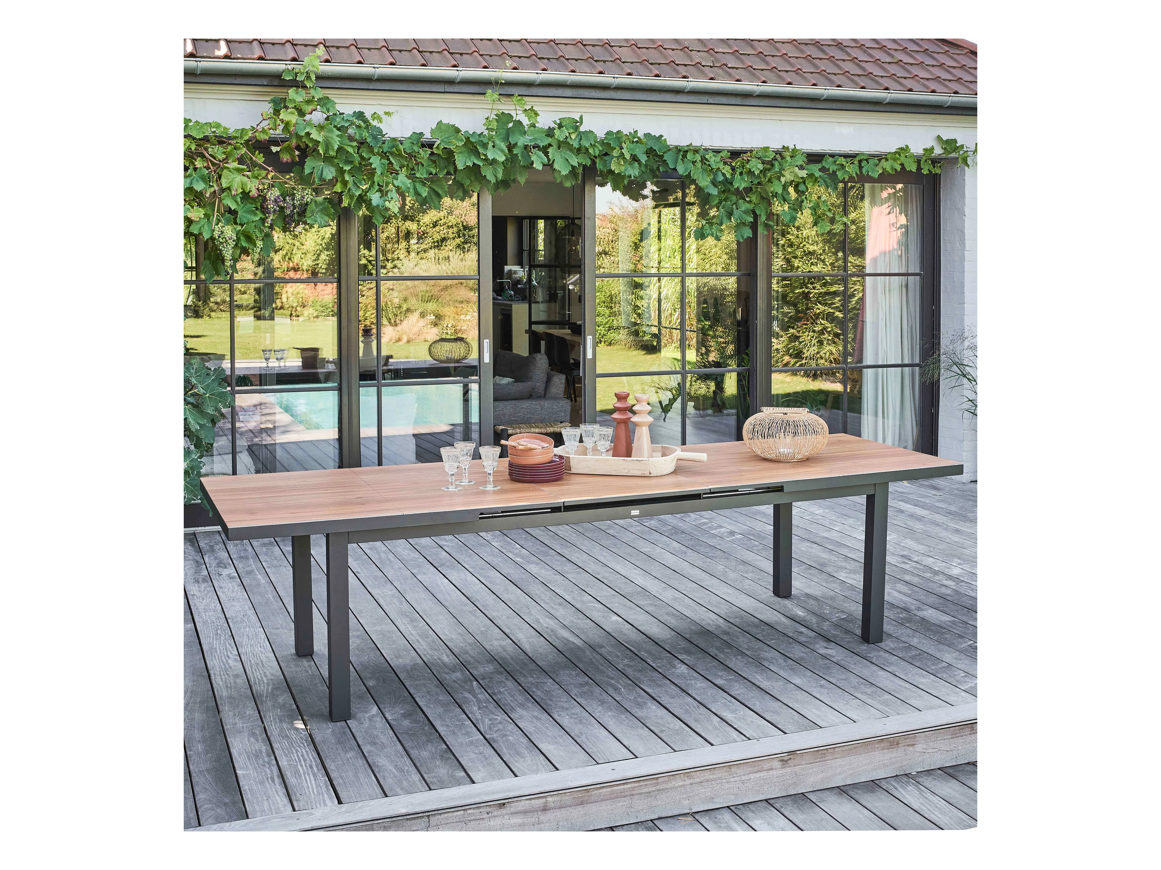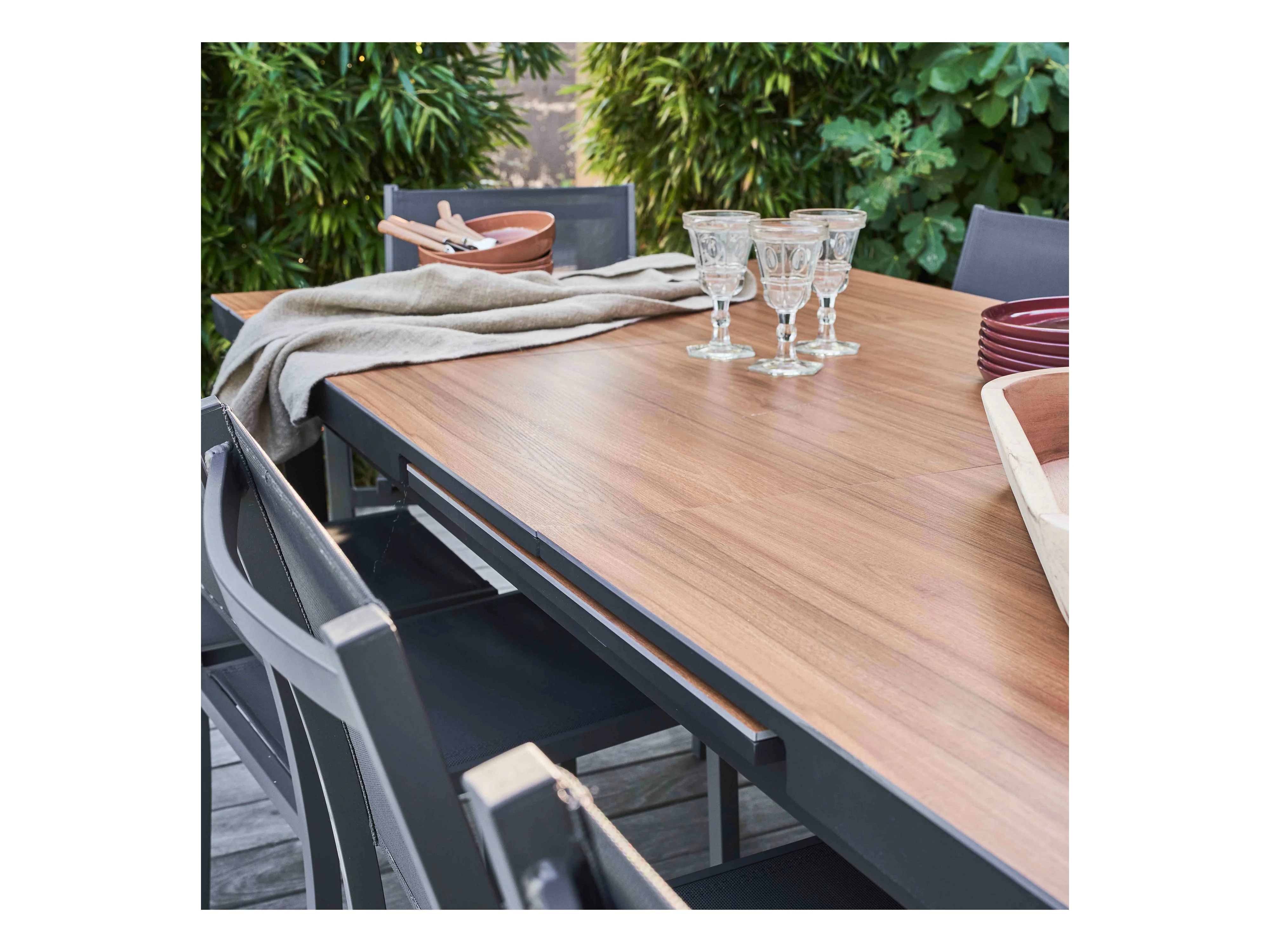 Table de jardin structure aluminium et céramique aspect bois - Tivoli