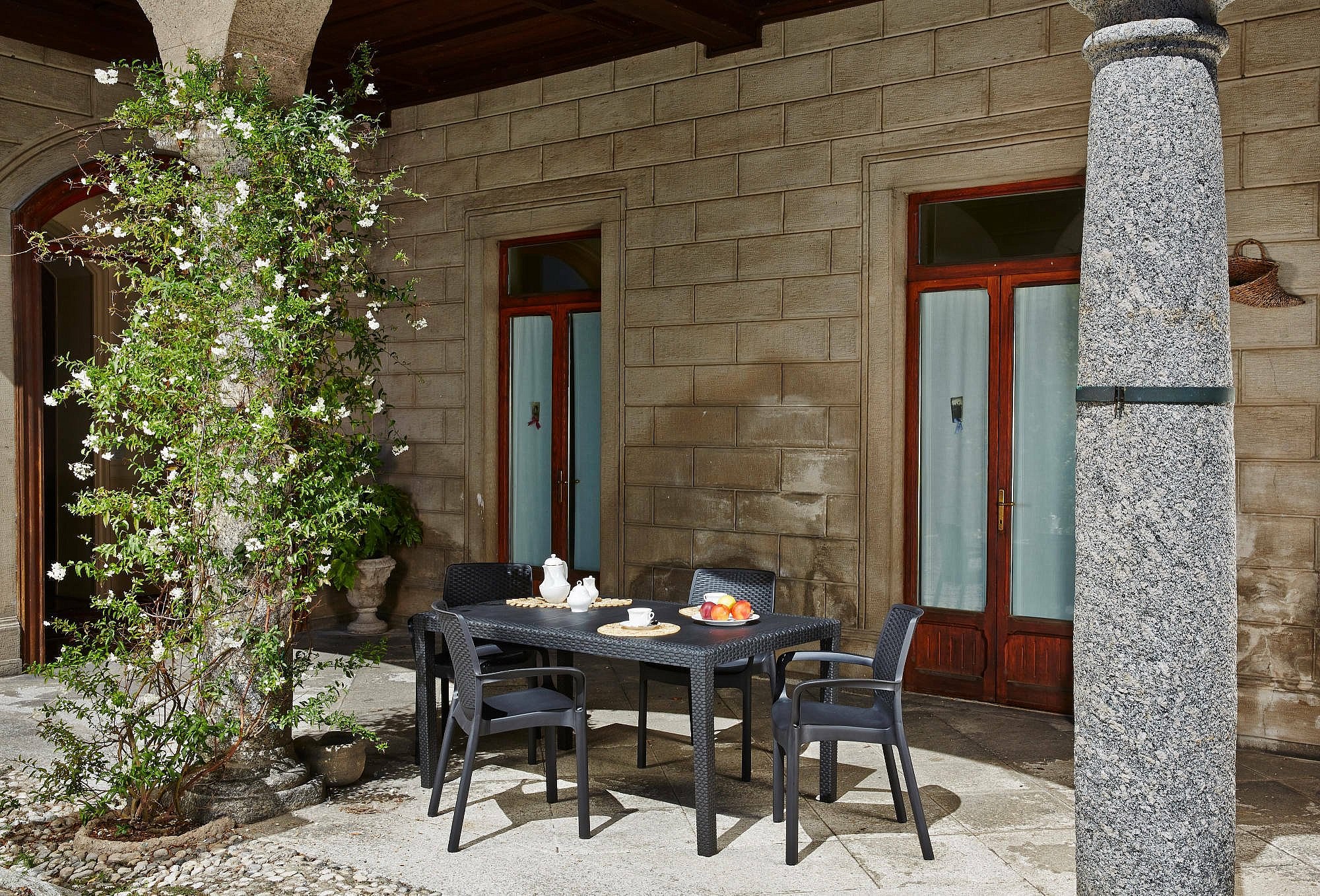 Table d'extérieur Dfelic, Étagère rectangulaire fixe, Table de jardin polyvalente effet rotin, 100% Made in Italy, 138x78h72 cm, Anthracite