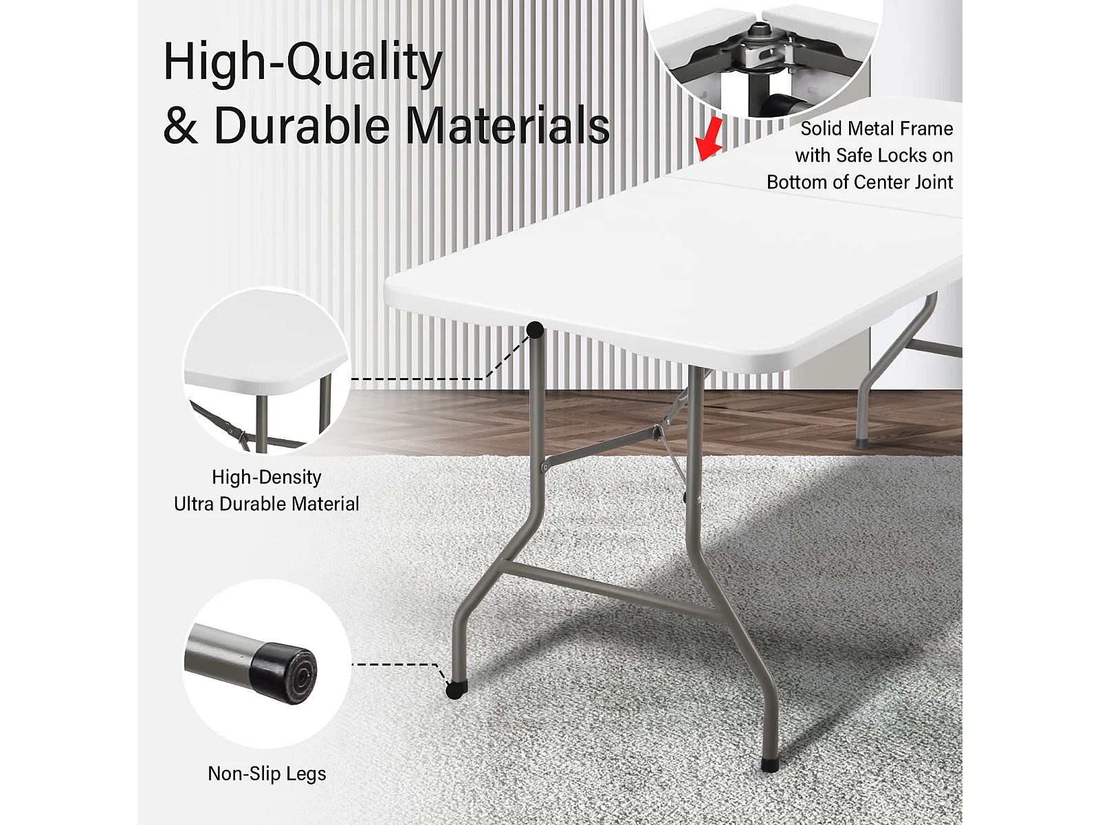 Table de jardin, Table pliante 180 x 74 x 74 cm, 6 ou 8 places, table pliante d'extérieur avec verrou de sécurité, poignée de transport