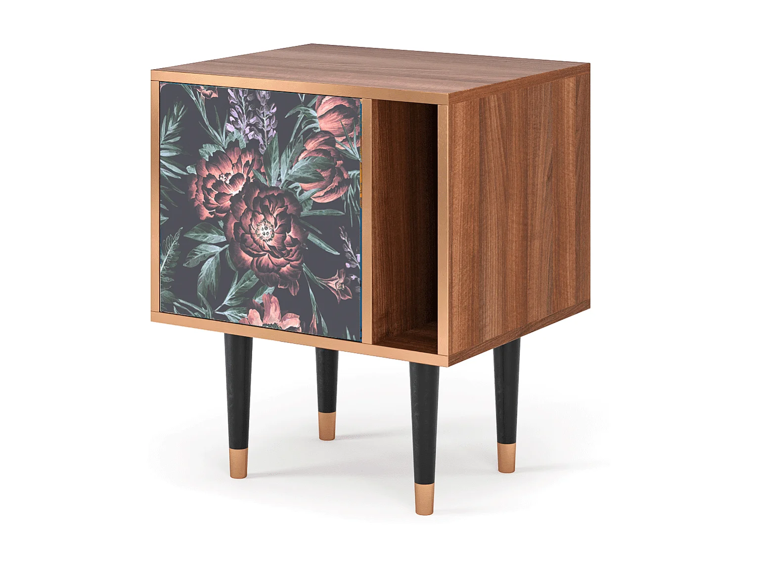 Table de nuit - 57х69х48 cm - S2 - Dark Peonies, Noyer