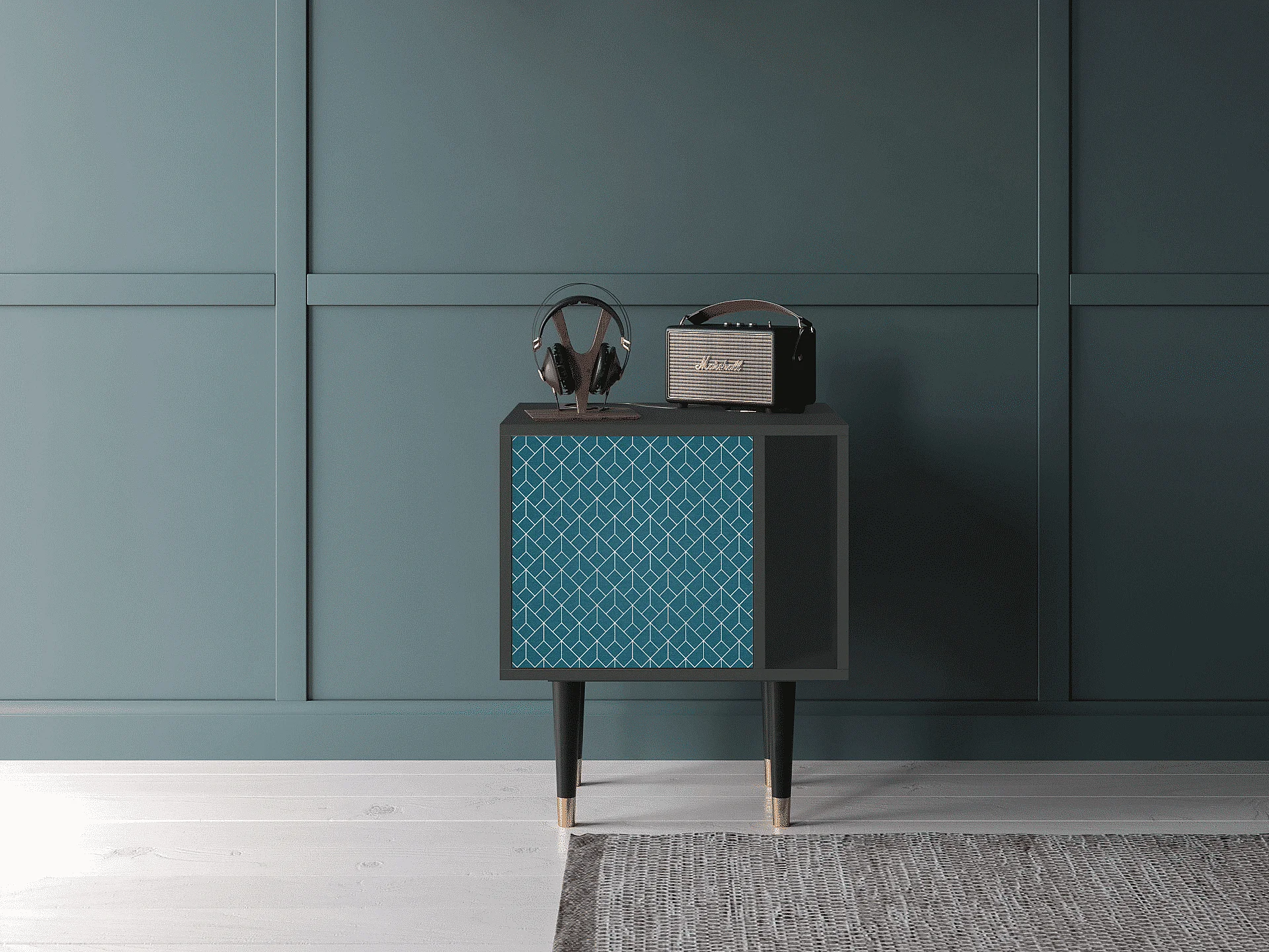 Table de nuit - 57х69х48 cm - S2 - Turquoise Geometry, Anthracite