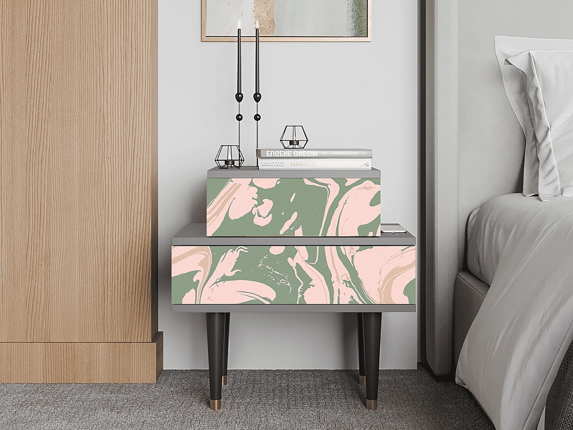 Table de nuit - 58х58х41 cm - NS1 - Aquarelle, Gris