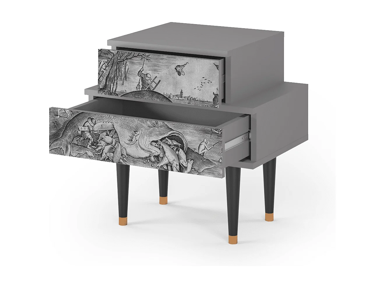 Table de nuit - 58х58х41 cm - NS1 - Big Fish Eat Little, Gris